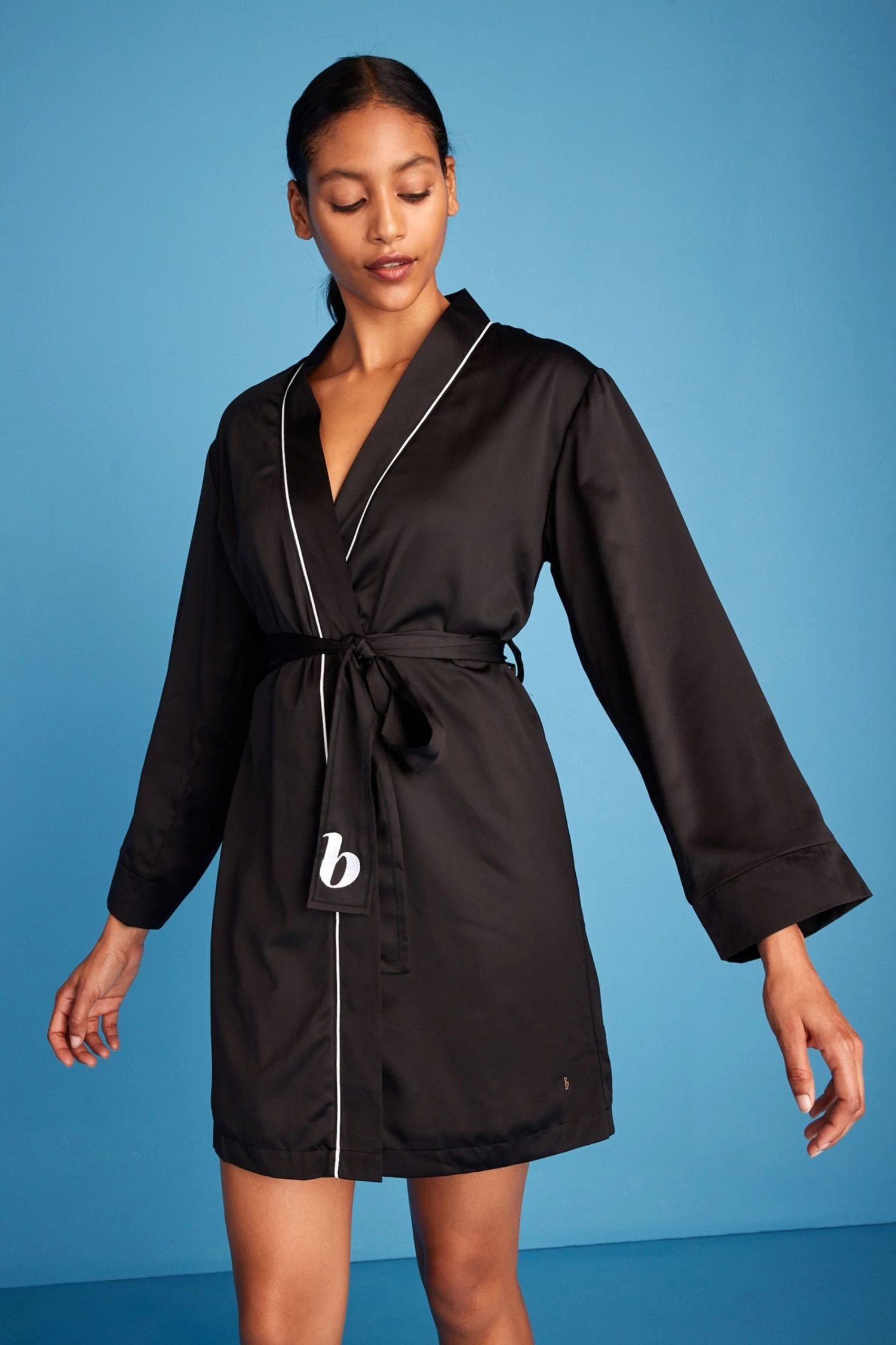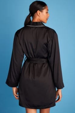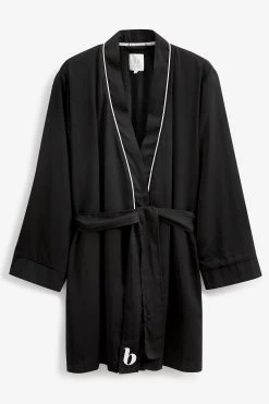 B By Ted Baker Black Satin Fleece Lined Dressing Gown