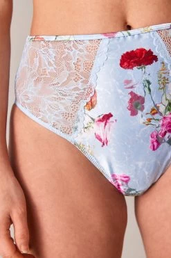B By Ted Baker Blue Floral Satin High Waist Knickers