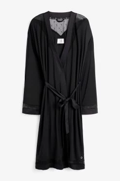 In supersoft Modal fabric offering comfort and a premium hand-feel. This beautiful robe features branded B mesh panels and hardware and a satin tie waist and cuffs.