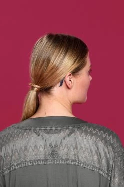 Features ribbed fabric, V-neck, long sleeves and cuffed.