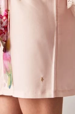 B By Ted Baker Pink Floral Satin Dressing Gown With Lace Details