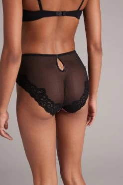 Full mesh back. Lace overlay detail. Adjustable straps. Hook and bar back closure. Branded hardware. Matching bra.