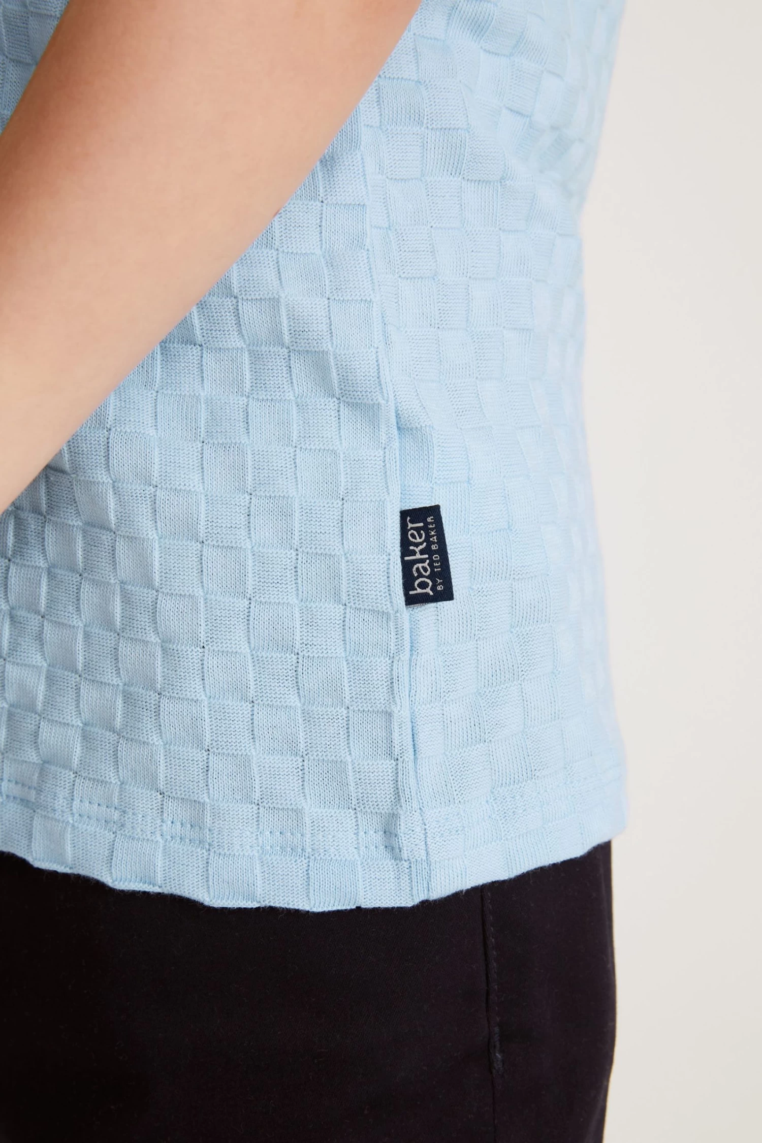A wardrobe classic from Baker by Ted Baker your little man will love wearing. Perfect for play, this regular fit t-shirt in a soft shade of purple boasts a stylish basket weave texture with a branded badge on the chest and it is finished with a woven branded tab on the side. Team it with a pair of jeans and trainers for a day on the go.