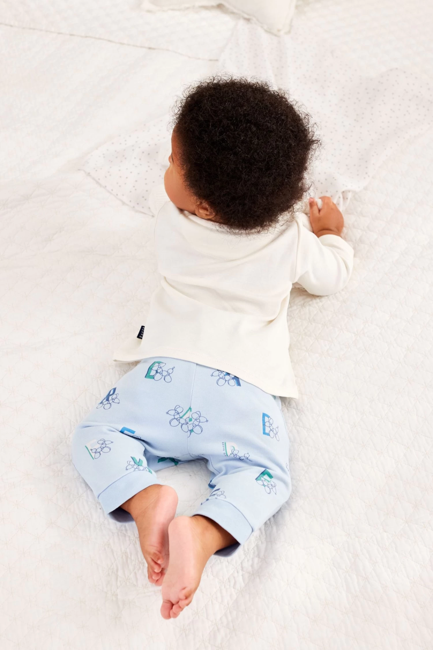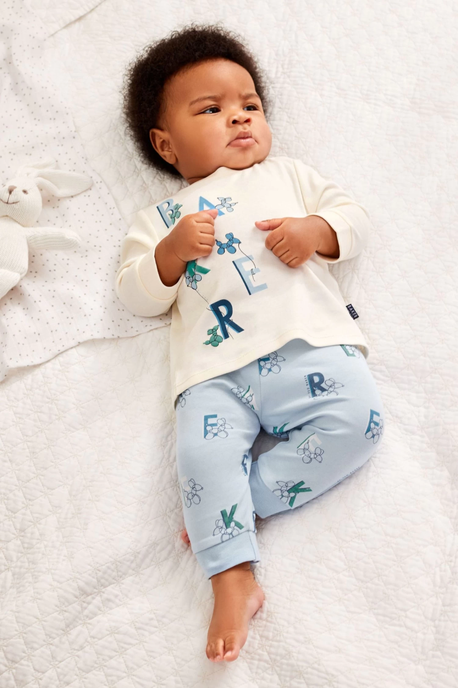 A charming little set to dress up your baby boy in from Baker by Ted Baker. The two-piece outfit includes a long sleeve top with a playful balloon printed branded graphic on the front and it comes with a coordinating pair of leggings in baby blue that have a matching adorable all over balloon print. Made from soft cotton, this outfit is designed to keep him comfy and stylish throughout the day.