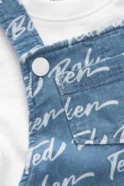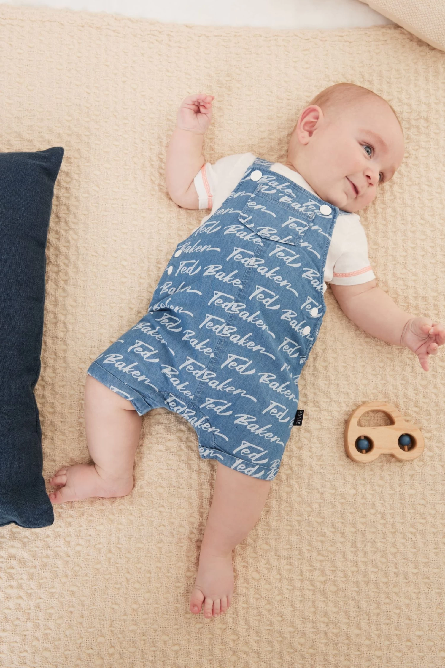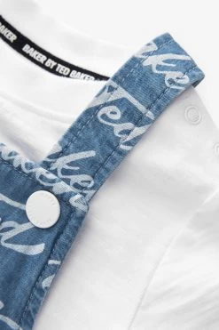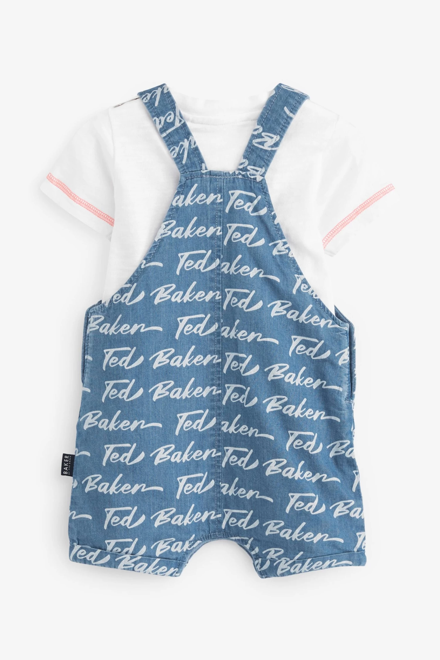 Baker By Ted Baker Blue Chambray Dungaree And T-Shirt Set