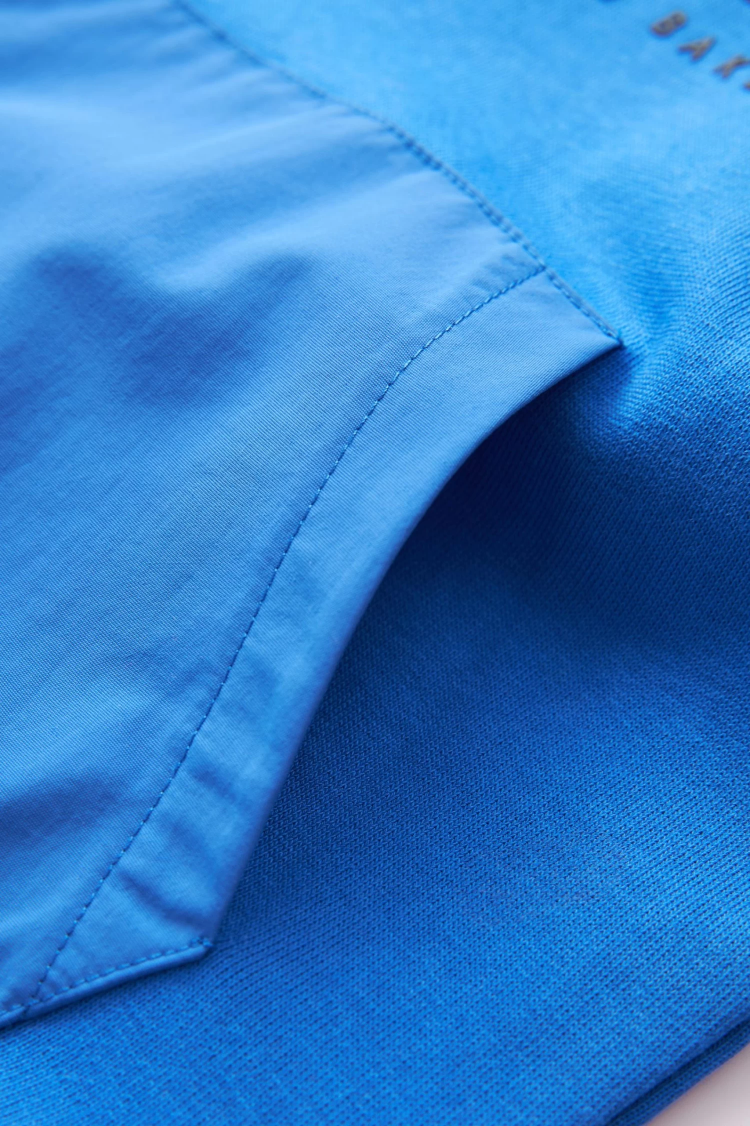 Perfect for those cooler days, this Baker by Ted Baker short sleeve hoodie will be a must-have item in his wardrobe. Made from a soft and breathable cotton, this vivid blue top boasts a relaxed fit with the iconic branding printed on the chest along with a nylon pouch pocket and will be the perfect layering piece over a t-shirt with jeans for a day of adventure.