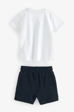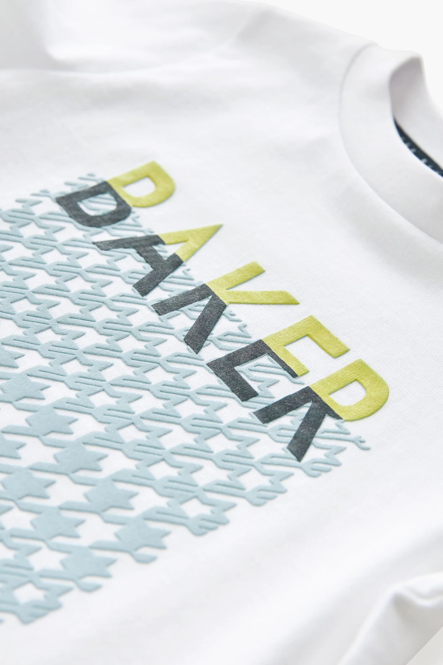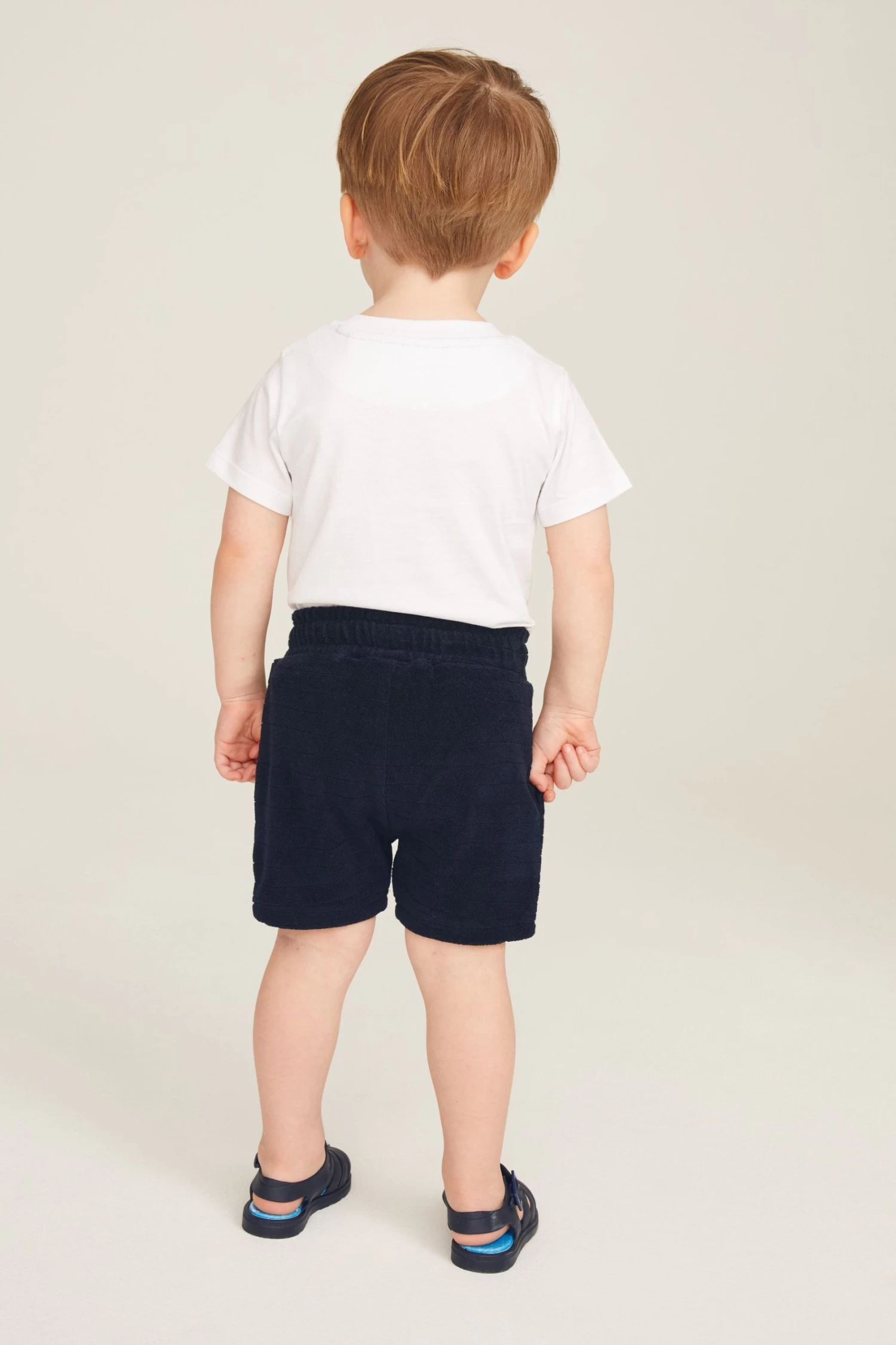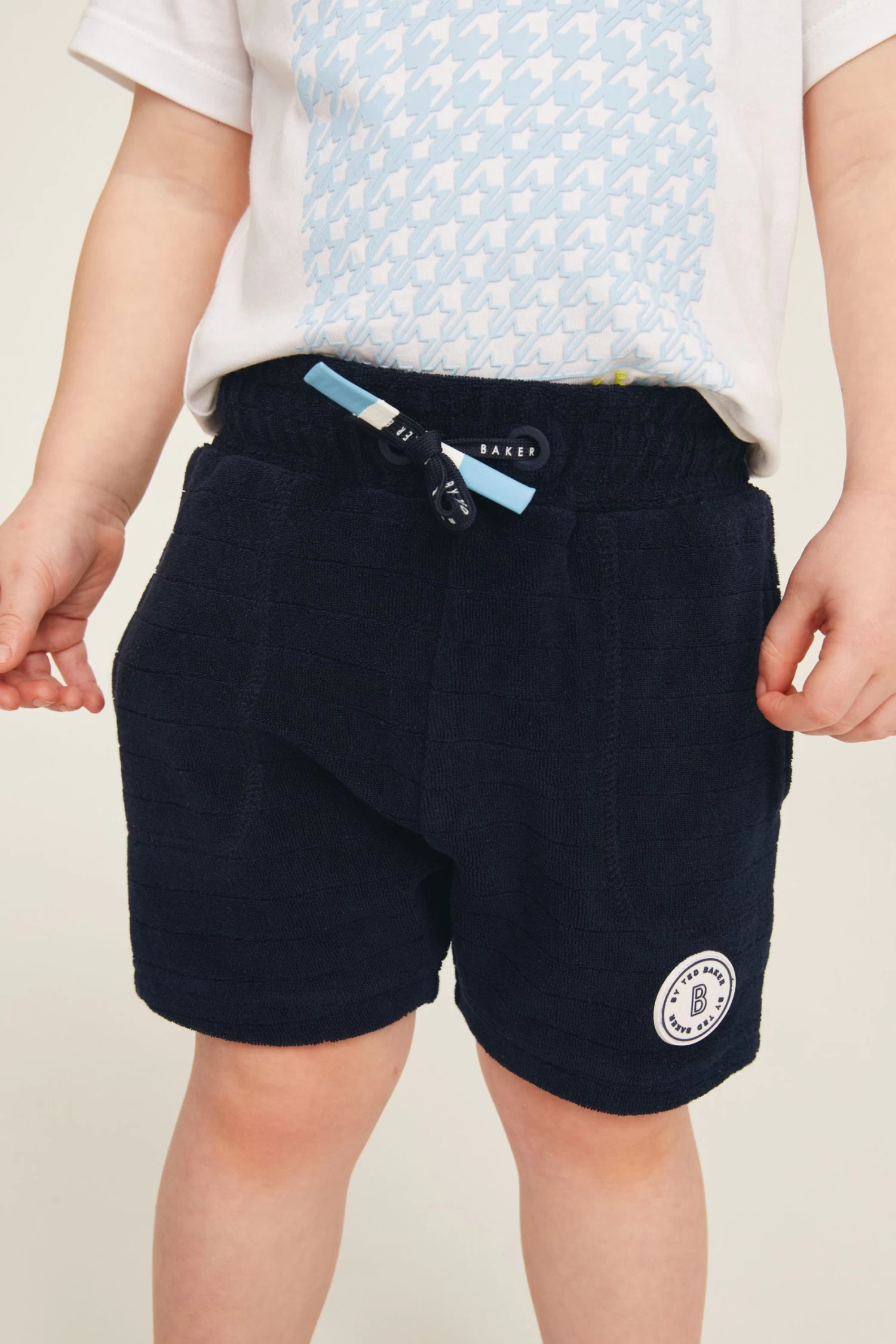 This charming set from Baker by Ted Baker is made for sunny days outdoors playing, The two-piece outfit includes a classic white t-shirt that has a striking geometric print on the front along with the iconic branding and it comes with a pair of navy towelling shorts that has a branded badge on the leg and branded drawstrings. This slick ensemble offers comfort and style with ease and warrants a place in his summer wardrobe.