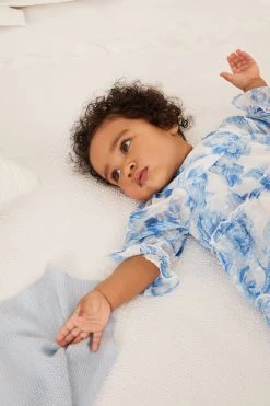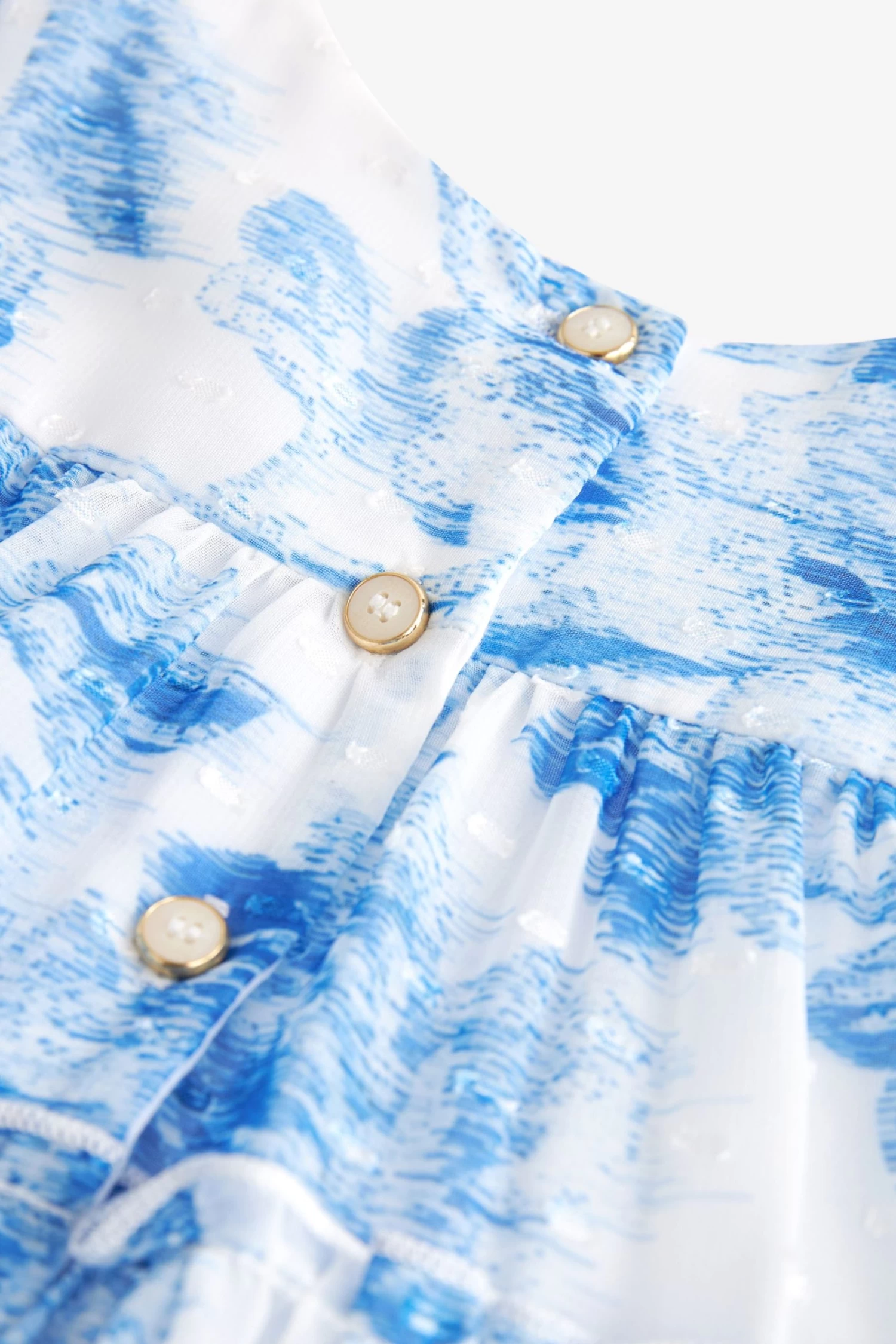 A gorgeous chiffon tiered dress from Baker by Ted Baker designed for your little lady. Boasting a charming all over floral print in blue and white, this floaty dress made from a soft chiffon also has billowing sleeves with a delightful cuff detail and branded button fastenings on the back.