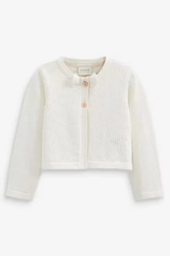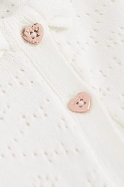 Layer up your little one with this adorable cardigan from Baker by Ted Baker. Made from a supersoft cotton in a pretty shade of pink, this woven piece is decorated all over with a charming diamond design and boasts a delicate bow detail on the collar with cute rose gold heart-shaped button fastenings down the front.