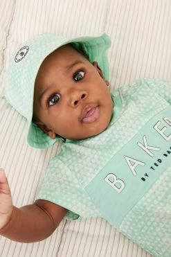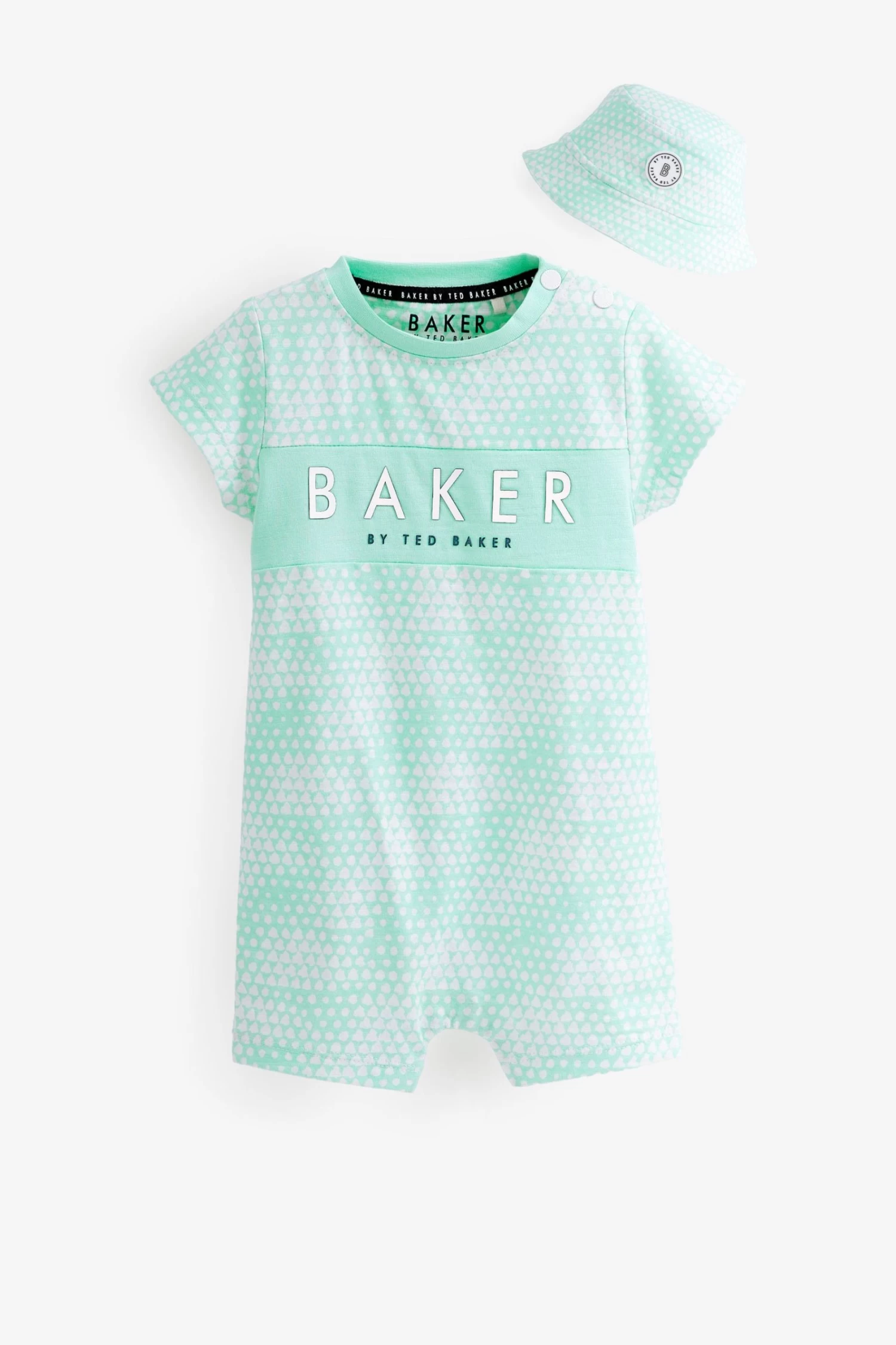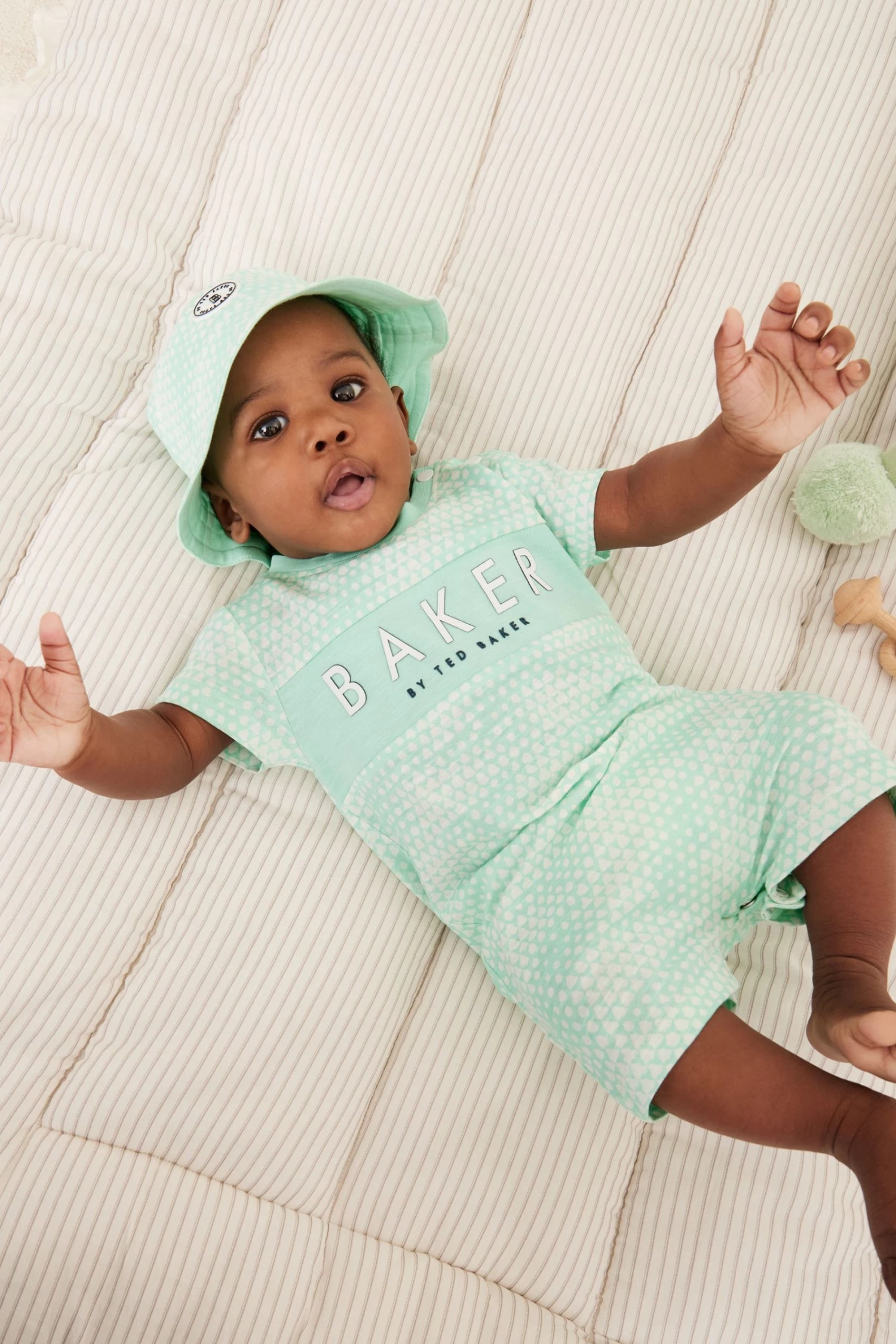 Baker By Ted Baker Green Rompersuit And Hat Set