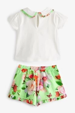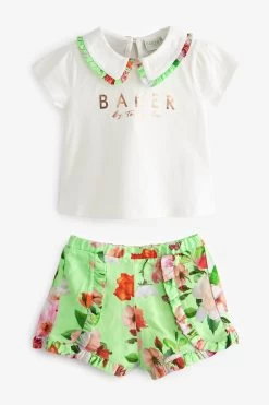 Baker By Ted Baker Green Short And Collar T-Shirt Set