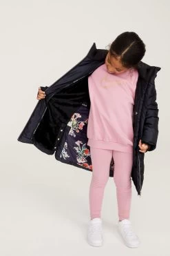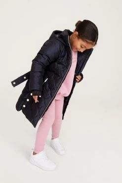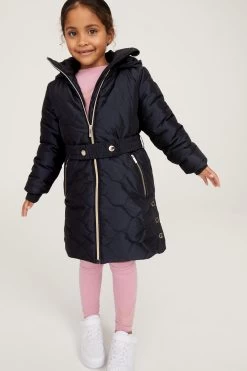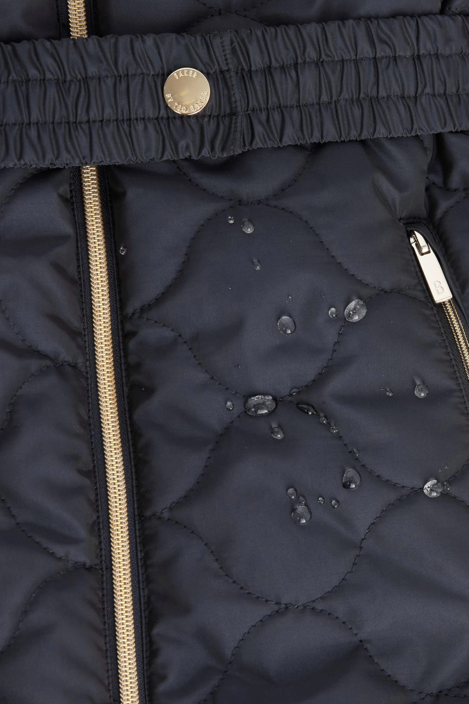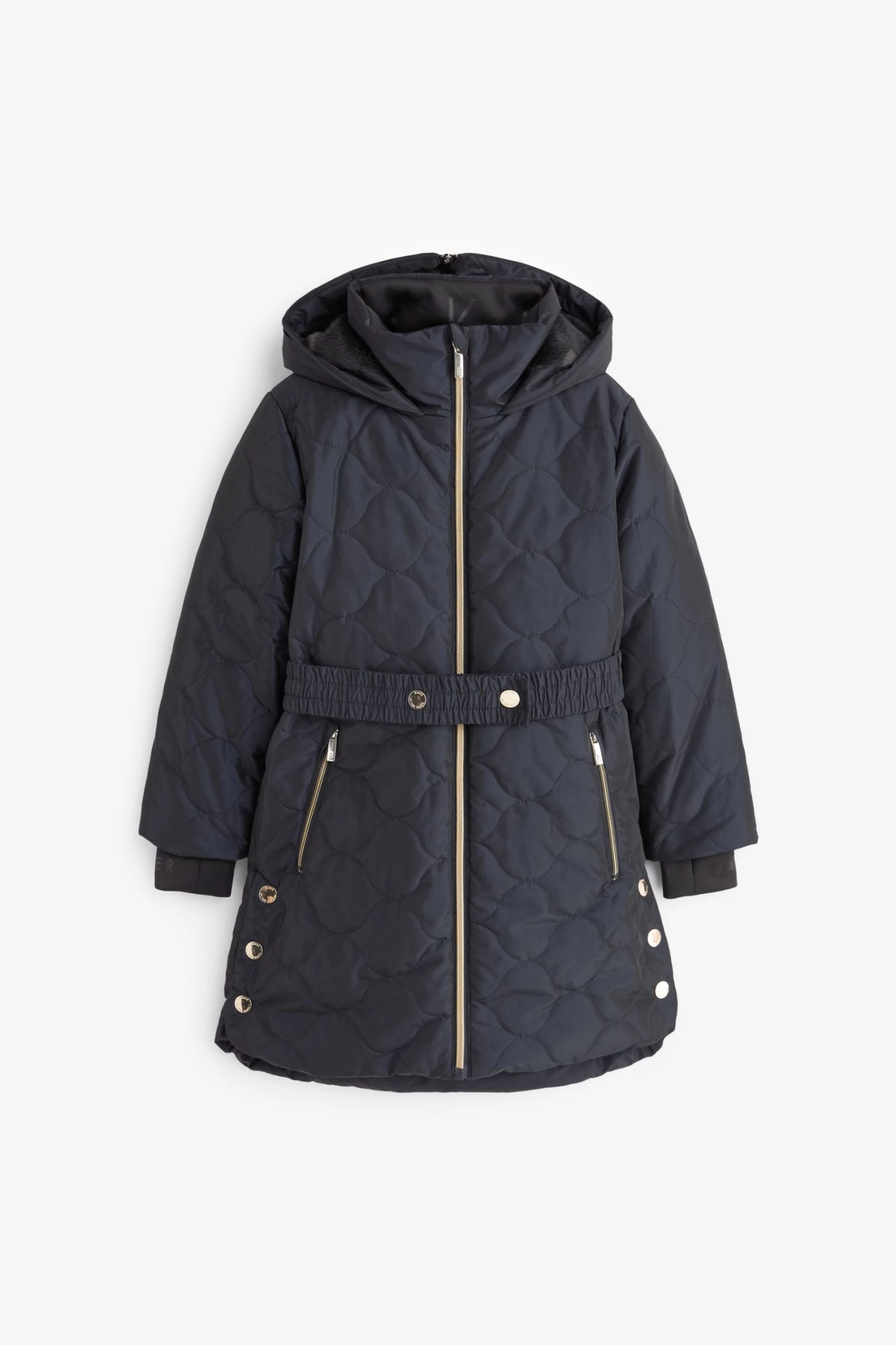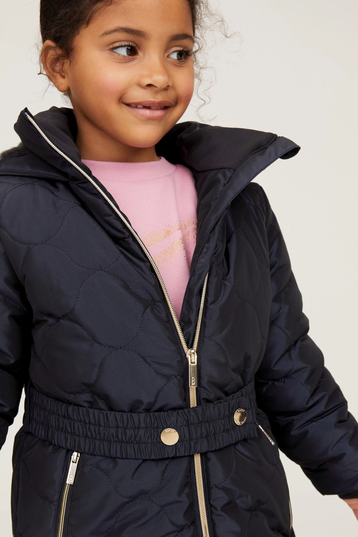 This quilted coat from Baker by Ted Baker is designed in their new luxe shower resistant fabric with faux fur body lining for extra warmth. Featuring printed lower lining, branded belt clasp, branded neoprene cuffs with thumb holes for extra warmth, branded faux fur split hood, cosy lined pockets, branded poppers at hem for extra leg room and gold coloured hardware detail.