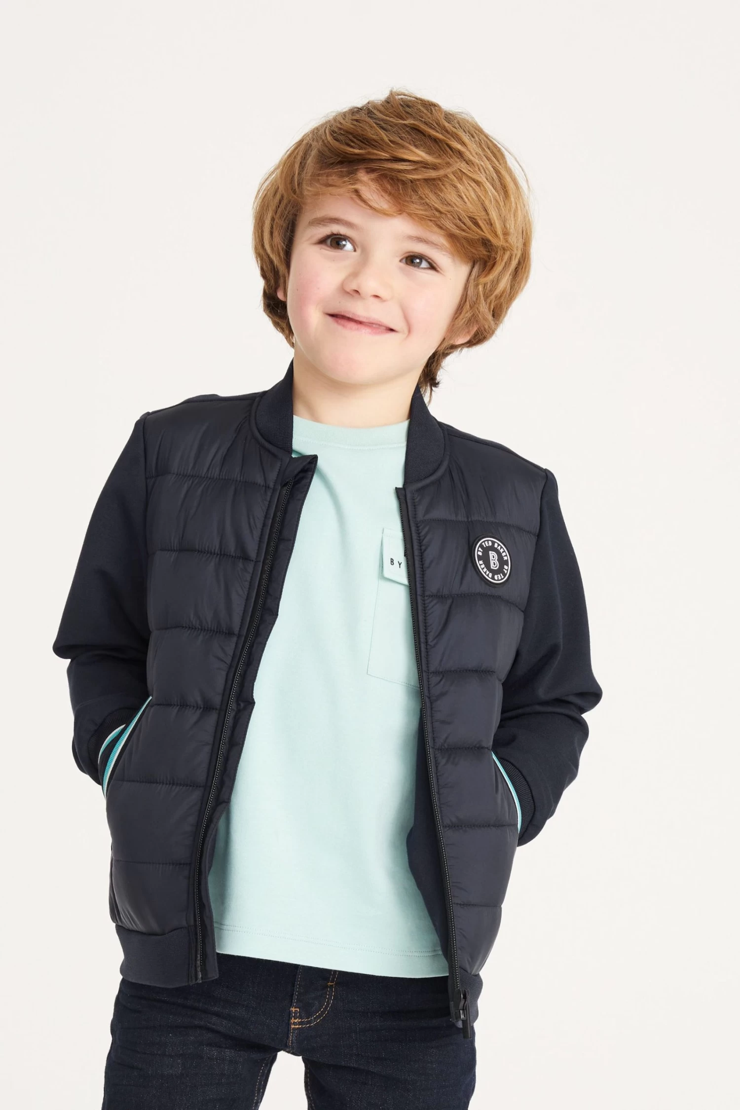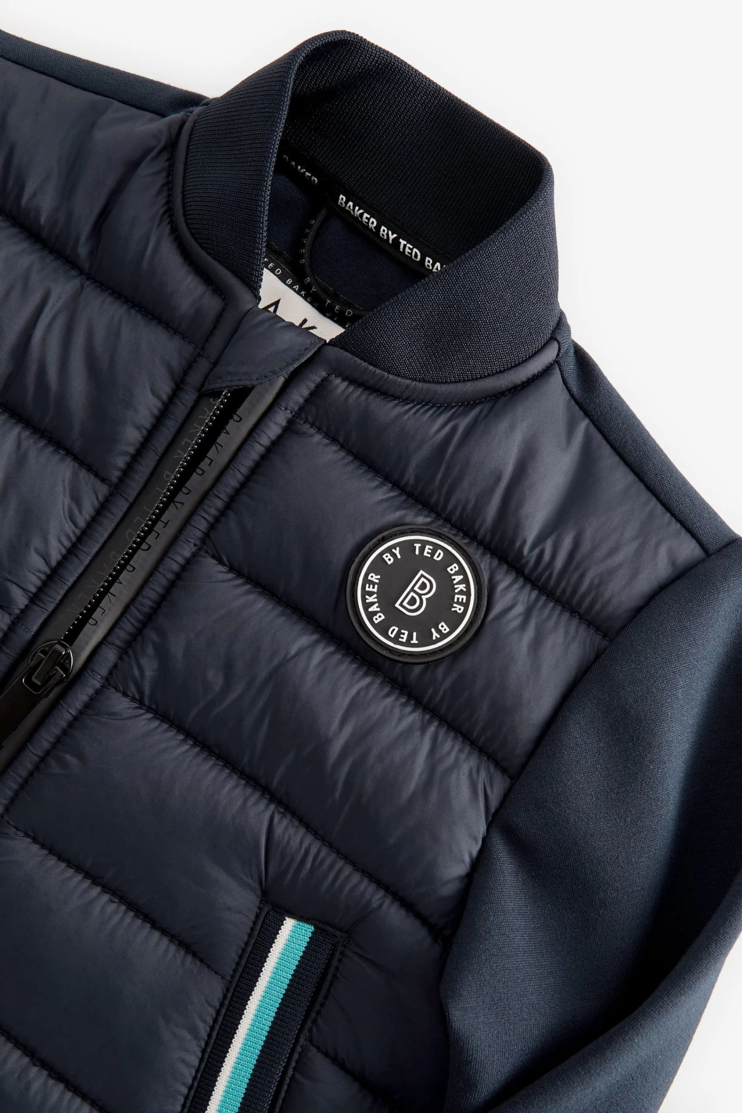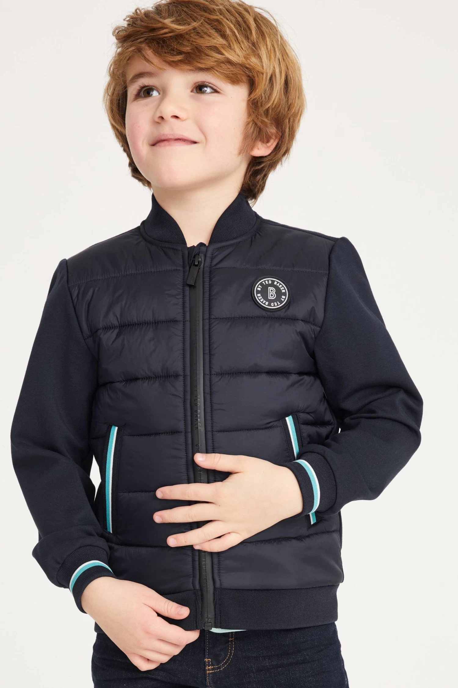 Wrap up your little boy in style with this sleek coat from Baker by Ted Baker. Padded for extra warmth, the navy jacket has sleeves made from a contrasting material and features a branded chest badge, blue edged pockets and cuff details and a zip fastening down the front.