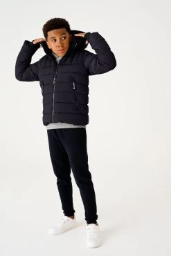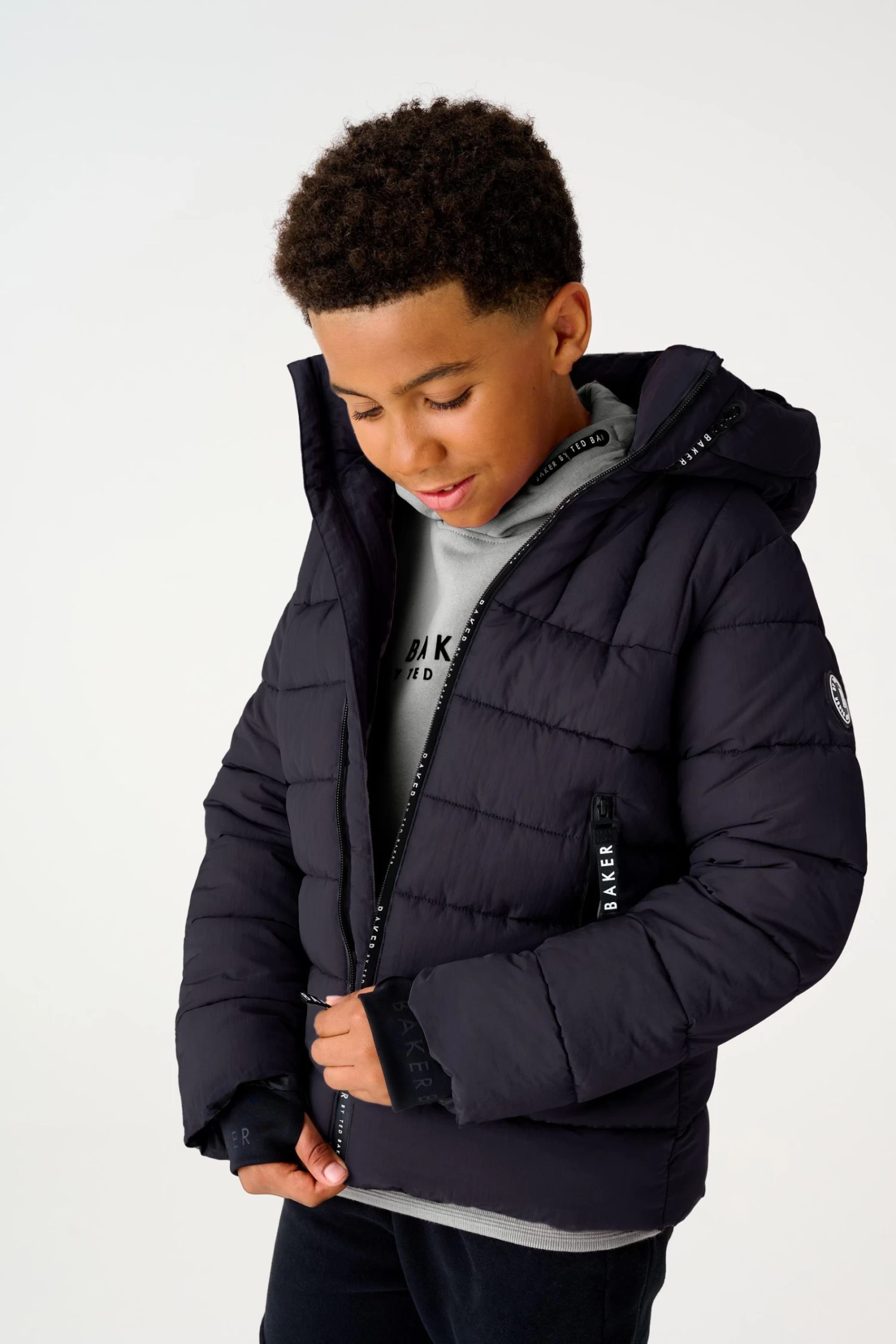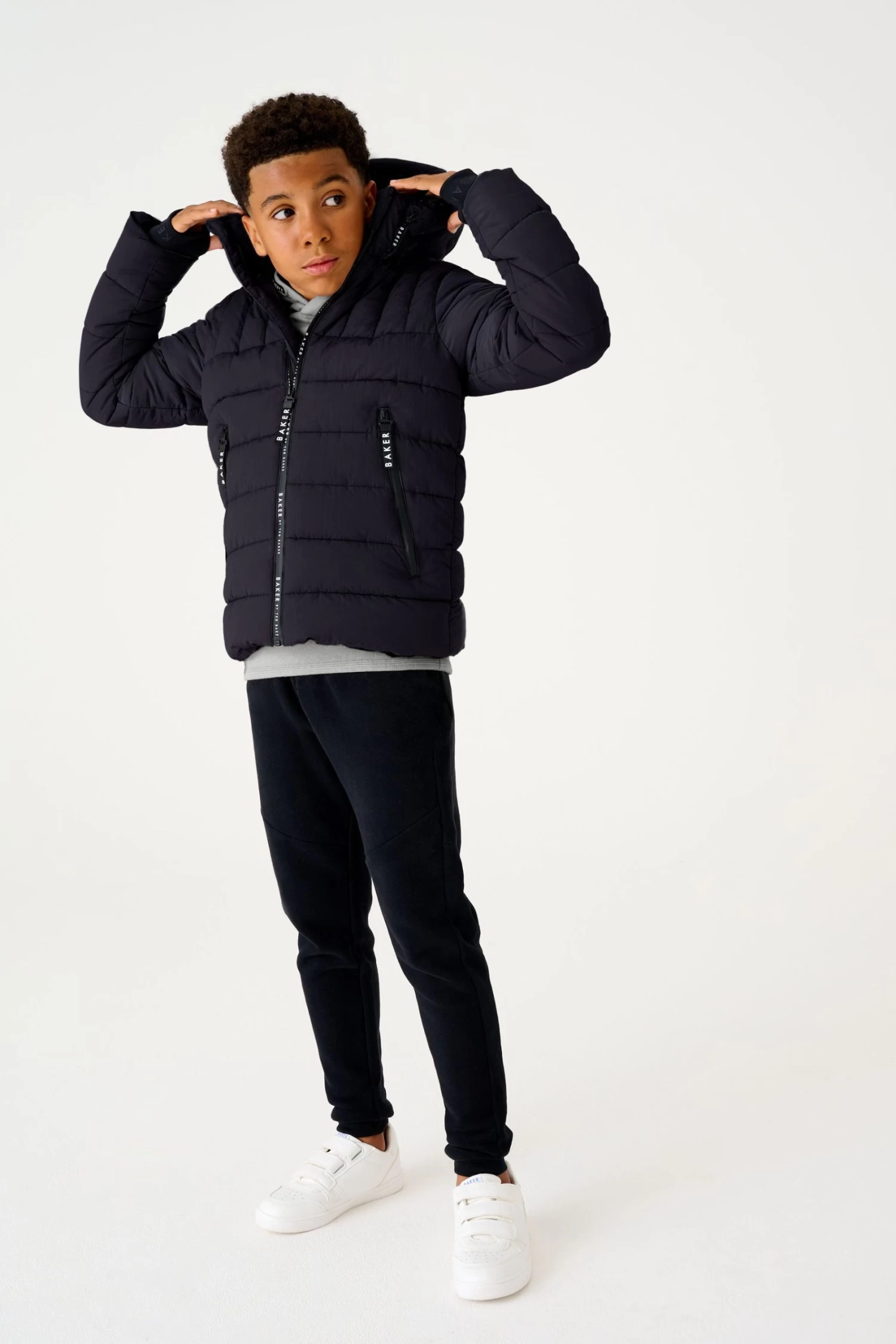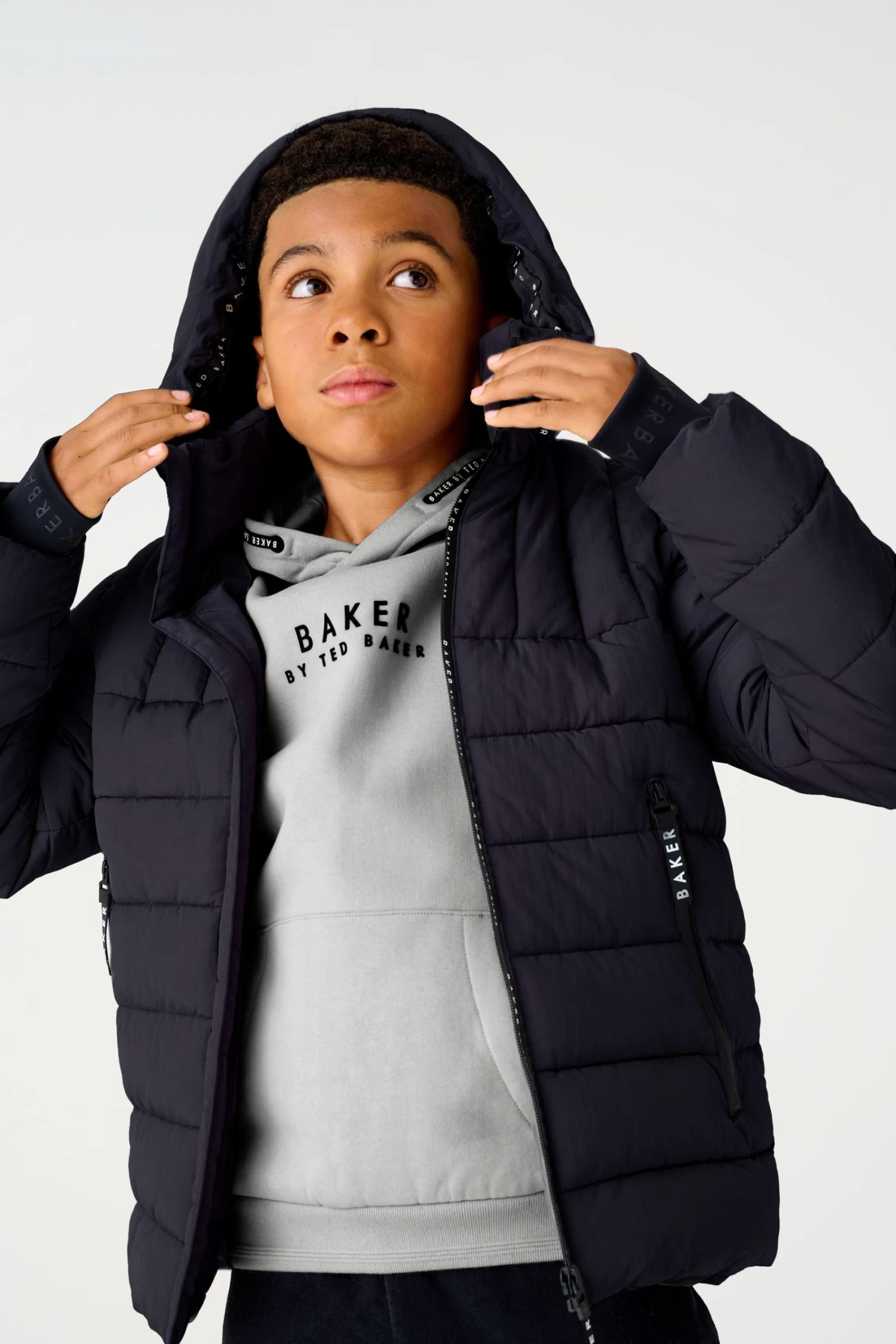 Keep your little one protected from the elements with this sleek padded coat from Baker by Ted Baker. Offering comfort and style in abundance, the classic navy jacket also features a branded zip fastening down the front with adjustable drawstrings and a branded badge on the arm. The cuffs also boast handy thumb holes to keep their little hands warm on even the coldest of days.