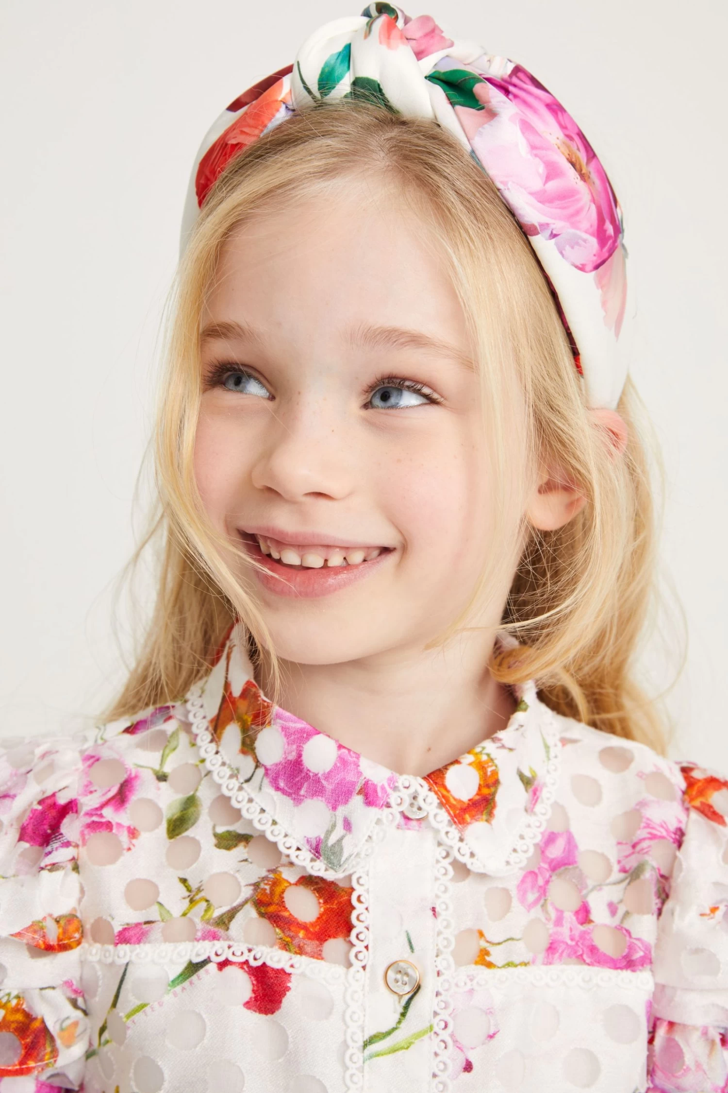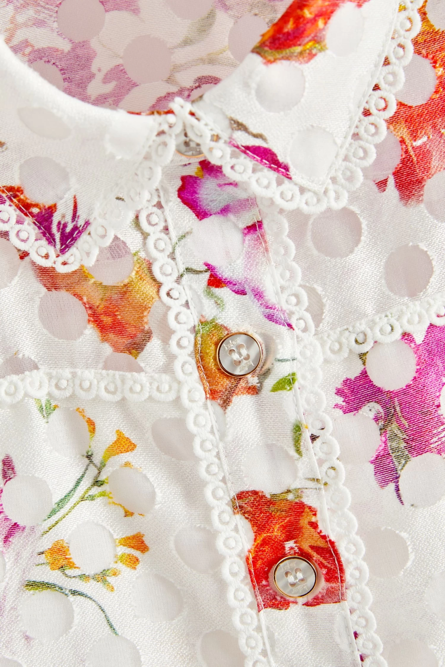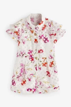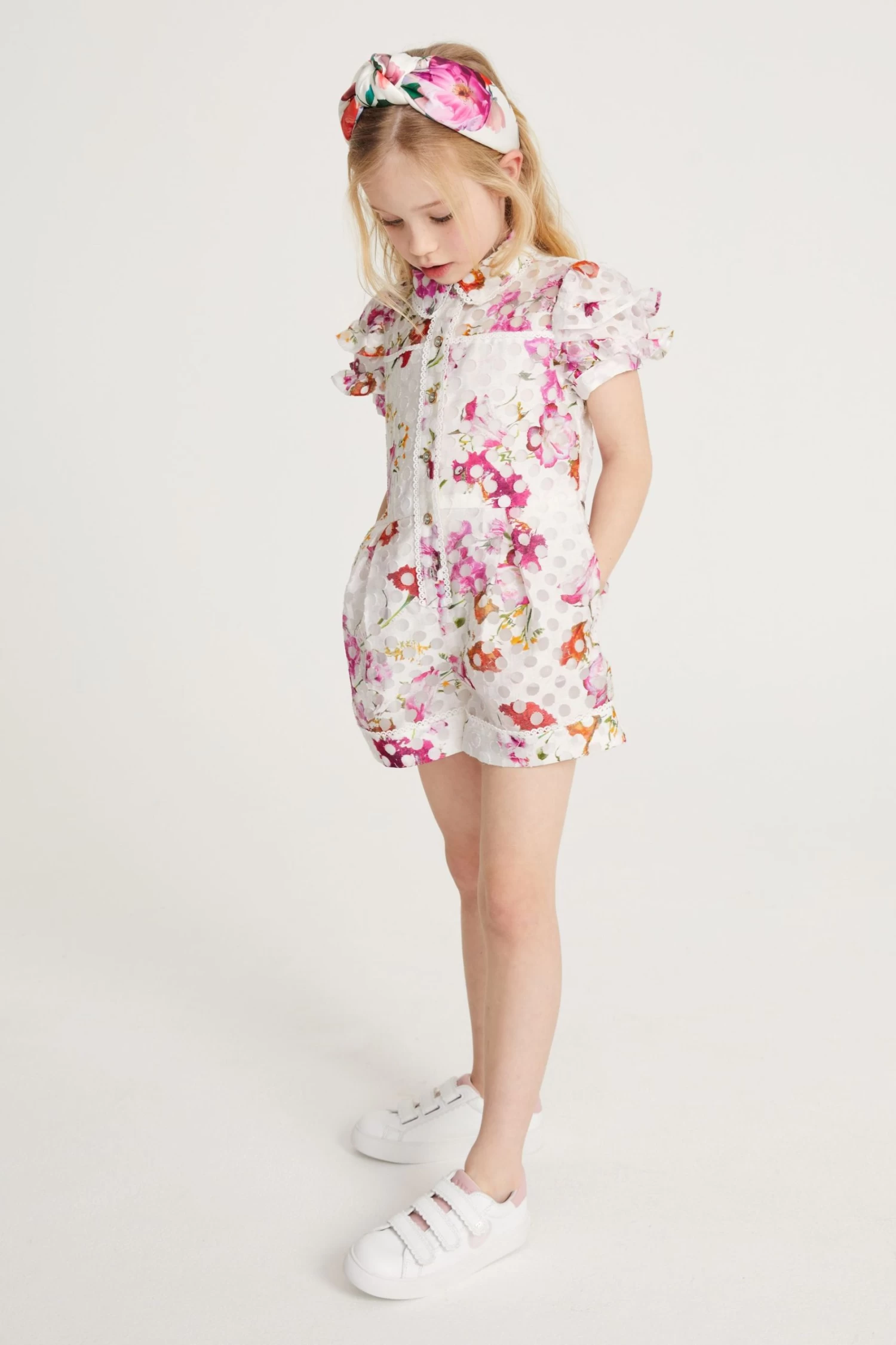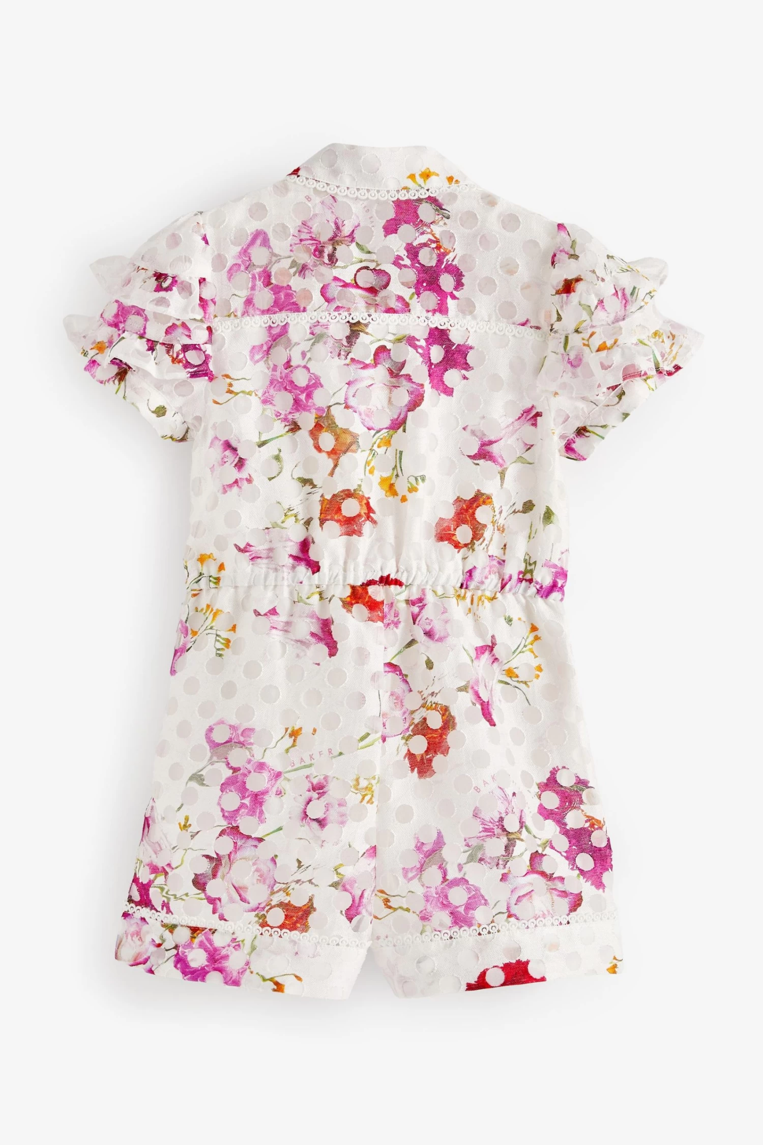 Made for days spent running around and playing, this charming playsuit from Baker by Ted Baker will be a summer must-have in your little lady’s wardrobe. Boasting an all over polka dot and floral print in pink and white, this beautiful all-in-one also has branded button fastenings at the front along with frilled sleeves and a delightful Broderie edging.