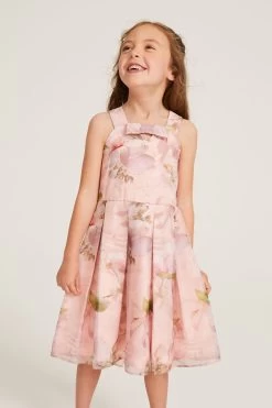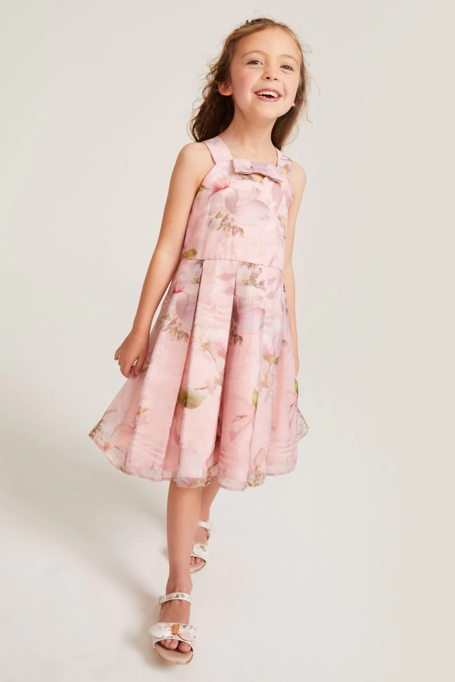 She will feel like a princess in this beautiful dress from Baker by Ted Baker. Covered in a stunning floral print, this pretty pale pink party piece has wide straps with a sharp pleated skirt and a charming bow detail on the front. Team this gorgeous dress with some equally elegant ballet pumps to complete the outfit.