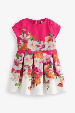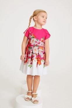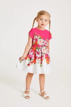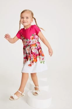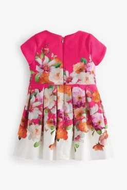 A gorgeous dress from Baker by Ted Baker your little girl will adore wearing. Finished in a glorious shade of pink and made with a premium fabric, this dress is perfect for all of her special events. Boasting a full skirt with pleats and a floral panel design,it has pleats at the shoulders, piped detail at the waist and a concealed zip fastening at the back.