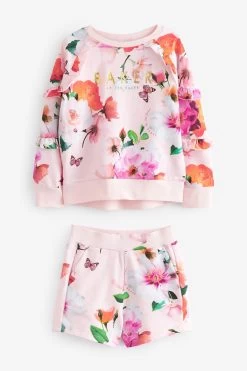 Baker By Ted Baker Pink Floral Sweater And Short Set