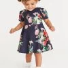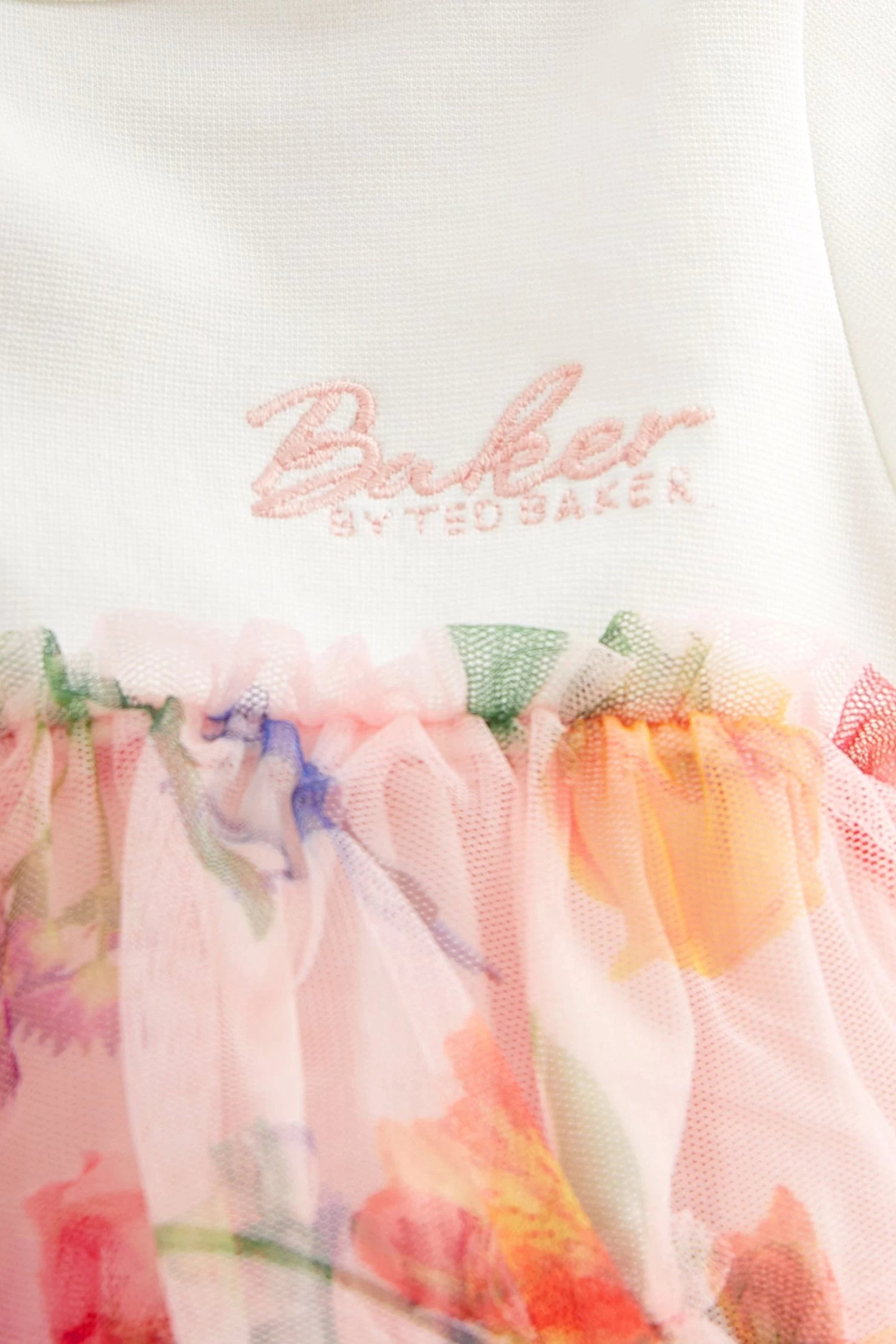 She will be pretty as a picture in this adorable dress from Baker by Ted Baker. Boasting a classic white t-shirt top half that bears the iconic branding appliquéd in pink on the chest, the stunning party piece is finished with a tiered mesh skirt that is covered in a charming floral print on a pink base. Team this dreamy dress with ballet flats and she will be ready to go.