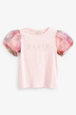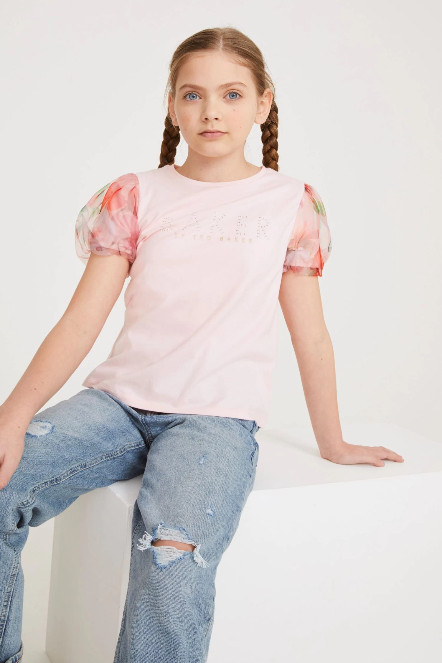 Baker By Ted Baker Pink Organza Sleeve T-Shirt