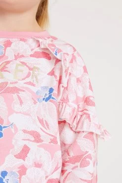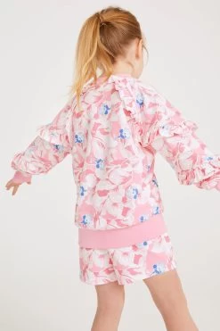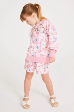 Cute and cool, this super stylish set from Baker by Ted Baker will complete her summer wardrobe. The two piece set boasts a fun and fashionable floral print on a pink base and includes a soft sweatshirt that is decorated with frill details on the sleeves and the iconic branding printed across the chest in gold foil. It comes with a matching pair of shorts that have an elasticated waistband for a comfortable fit. Worn together or seperately, we’re sure she will have this outfit on repeat.