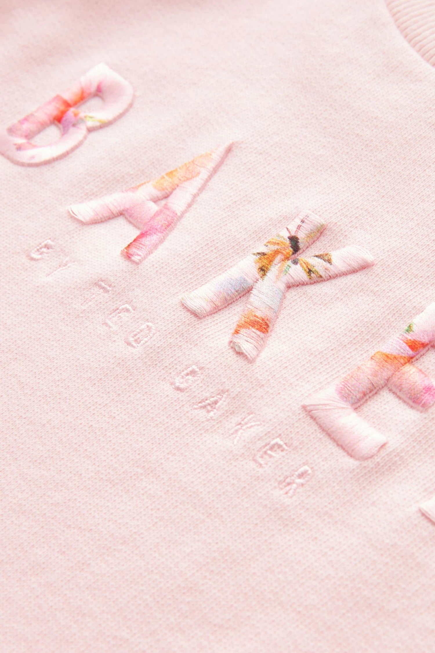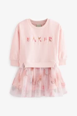 A beautiful dress for your little lady to enjoy wearing this summer from Baker by Ted Baker. The soft pink mockable dress features a sweatshirt top half that has the iconic branding appliquéd across the front and it is finely finished with a delicate mesh net skirt that is decorated all over with a floral print. Team it with a pretty pair of shoes to complete the look.
