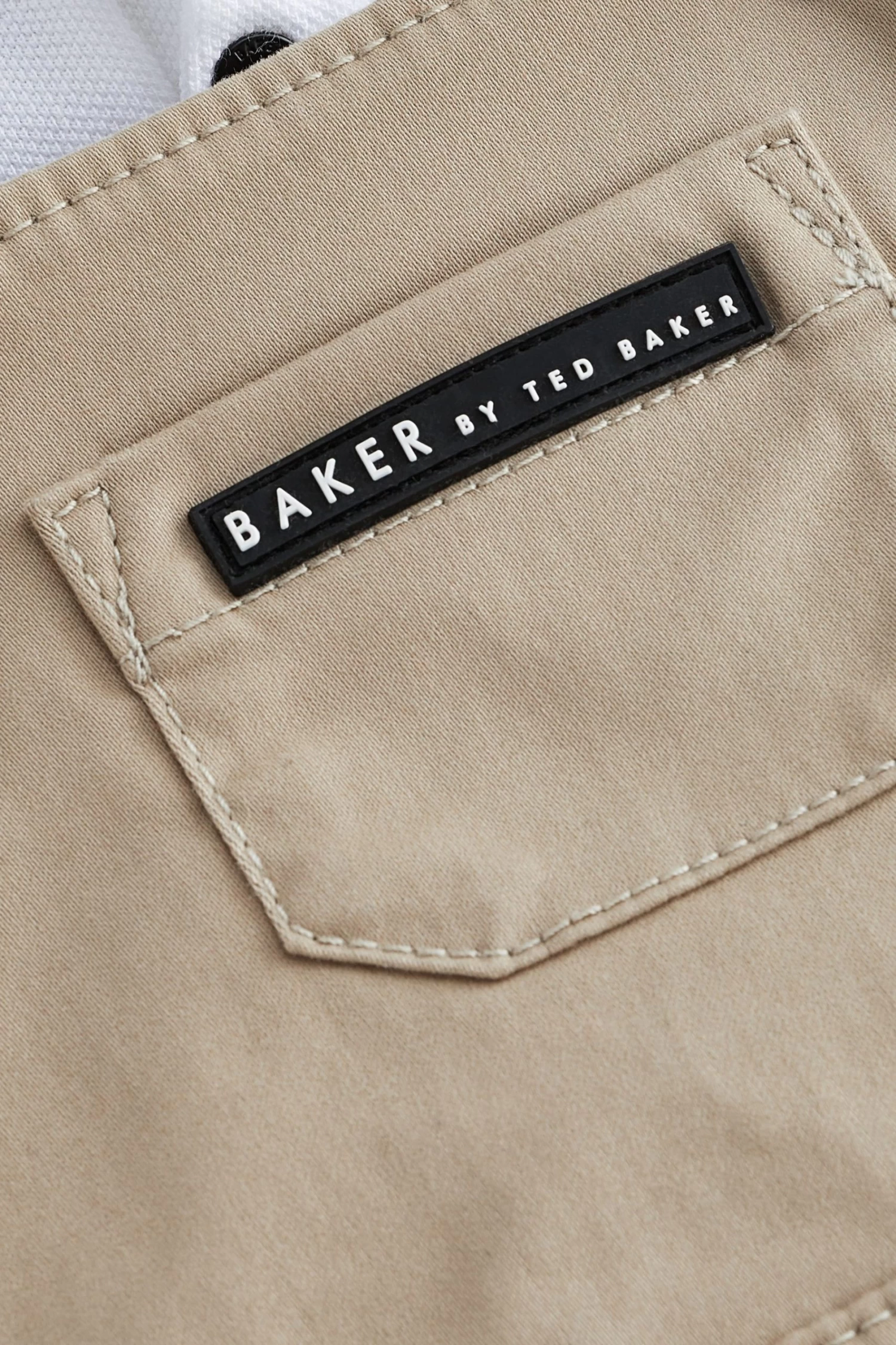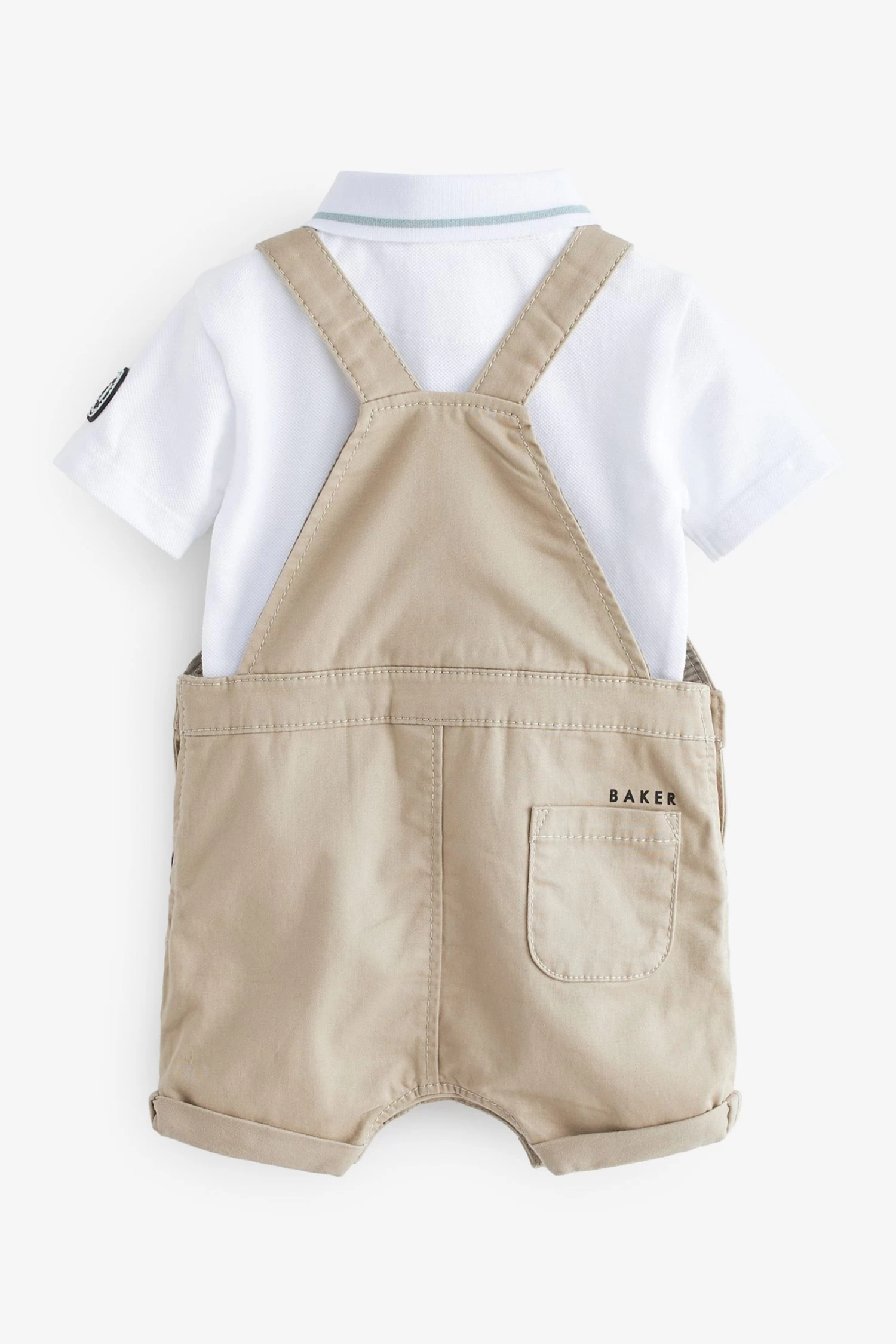 An adorable little outfit designed for your baby boy from Baker Ted Baker. The set includes a charming pair of dungarees in stone that has a branded badge on the chest with front pockets and adjustable straps fastened with branded poppers. They come with a smart polo shirt that also boasts branded popper fastenings down the neck and a Baker by Ted Baker badge on the sleeve. Worn together or separately, this set will be a lovely addition to his first wardrobe