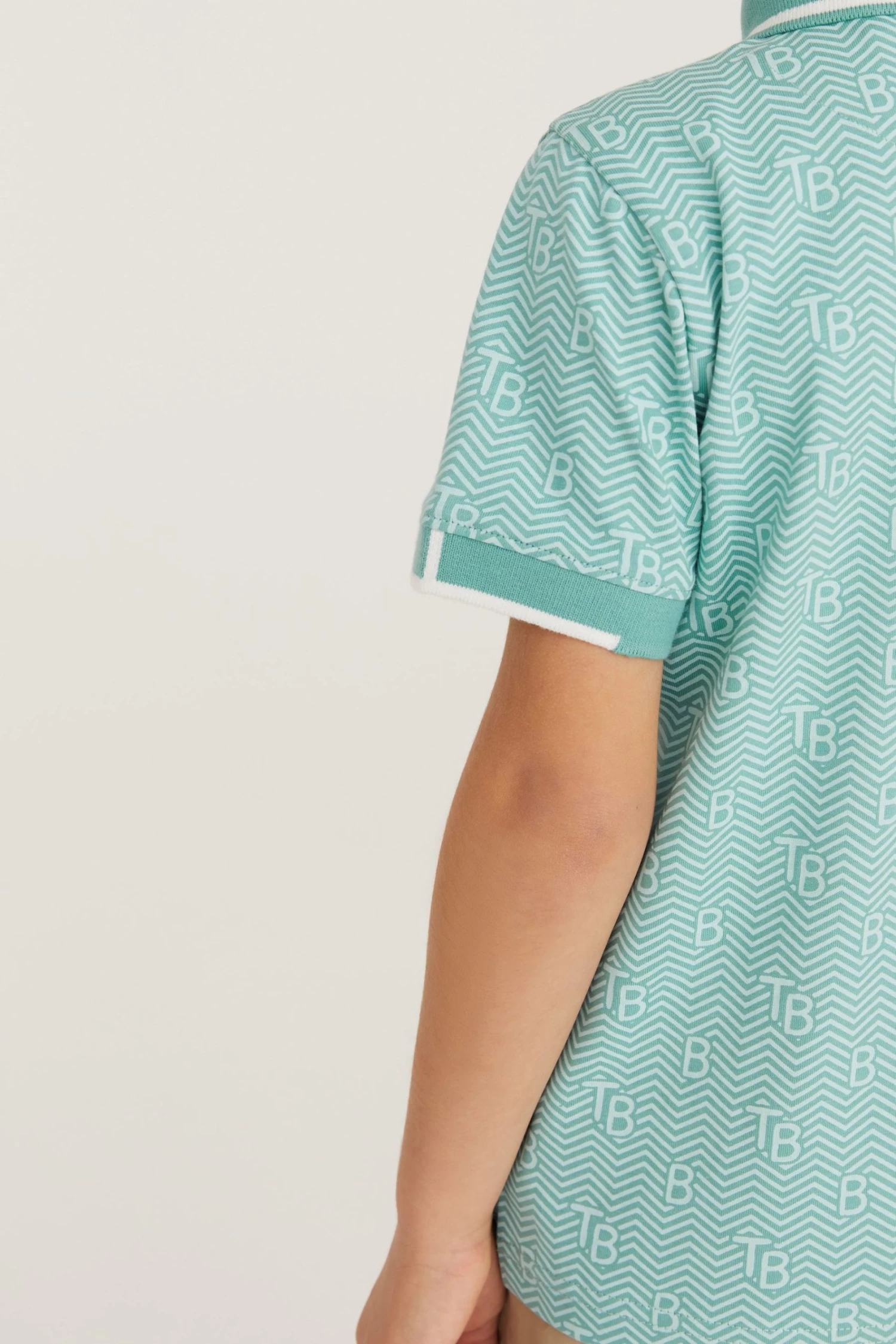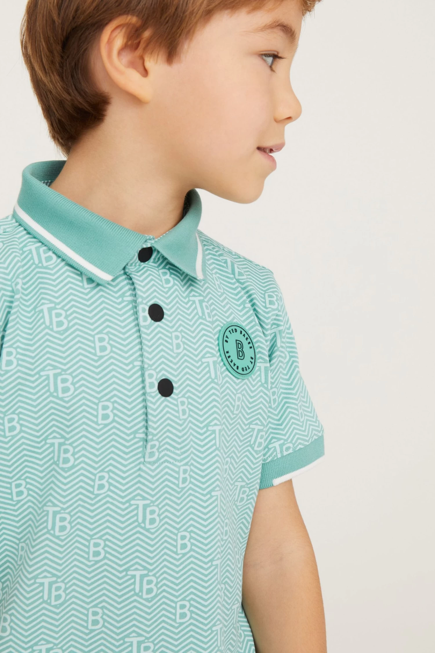 Nail his summer wardrobe with this cool and colourful polo shirt from Baker by Ted Baker. The bright red short sleeve top boasts a branded chevron print all over with detailing on the cuffs and collar and matte black popper fastenings on the neck. It is finely finished with a branded badge on the chest. Team this charming top with shorts and trainers to complete the look.