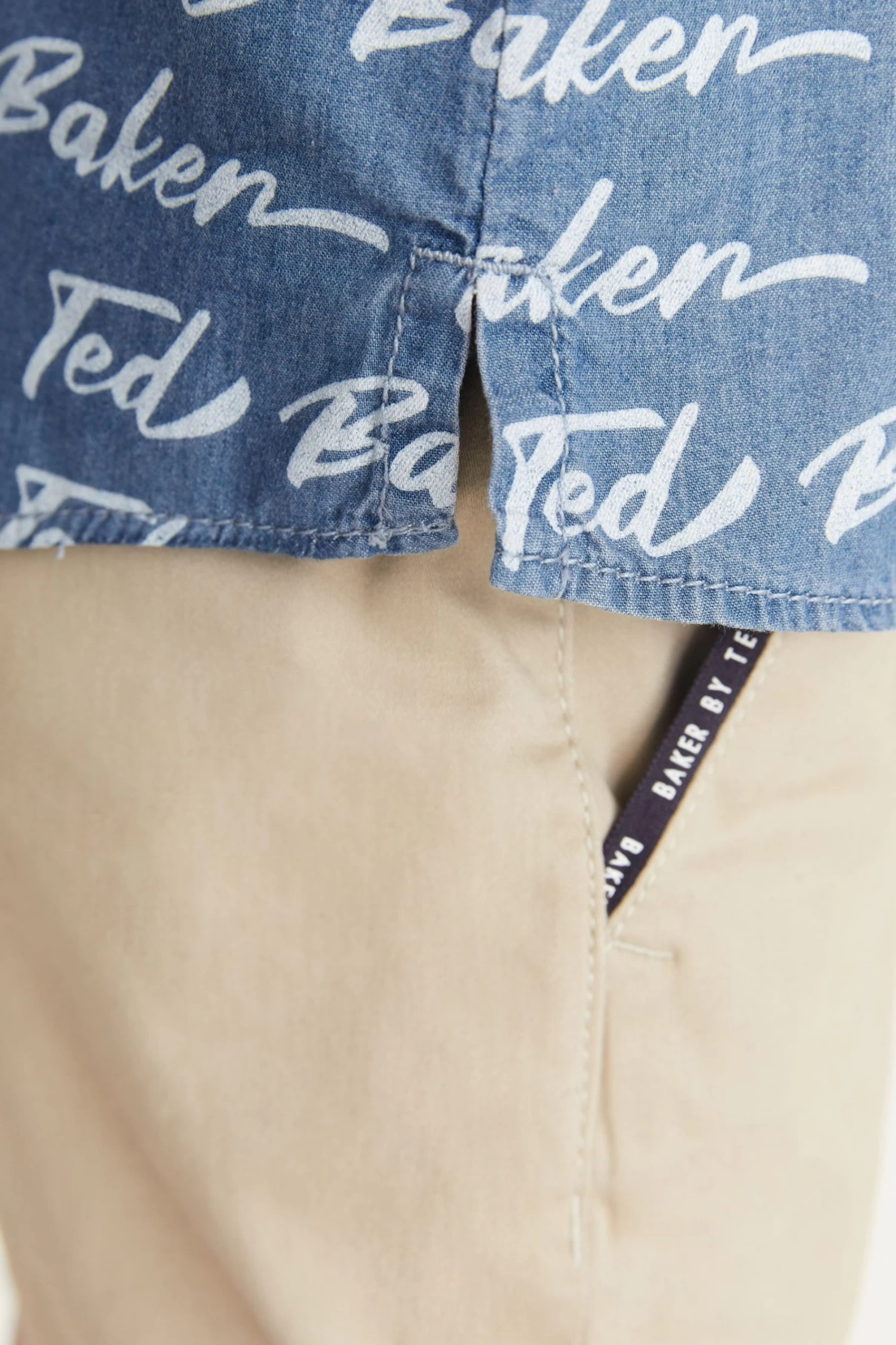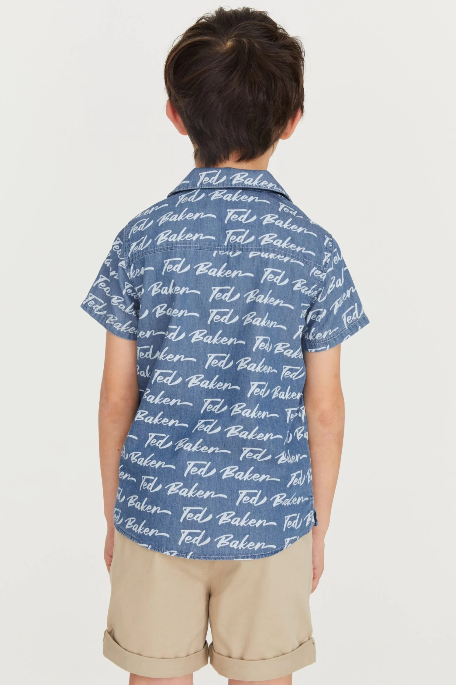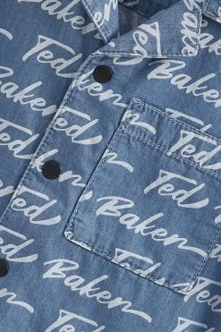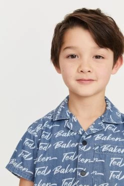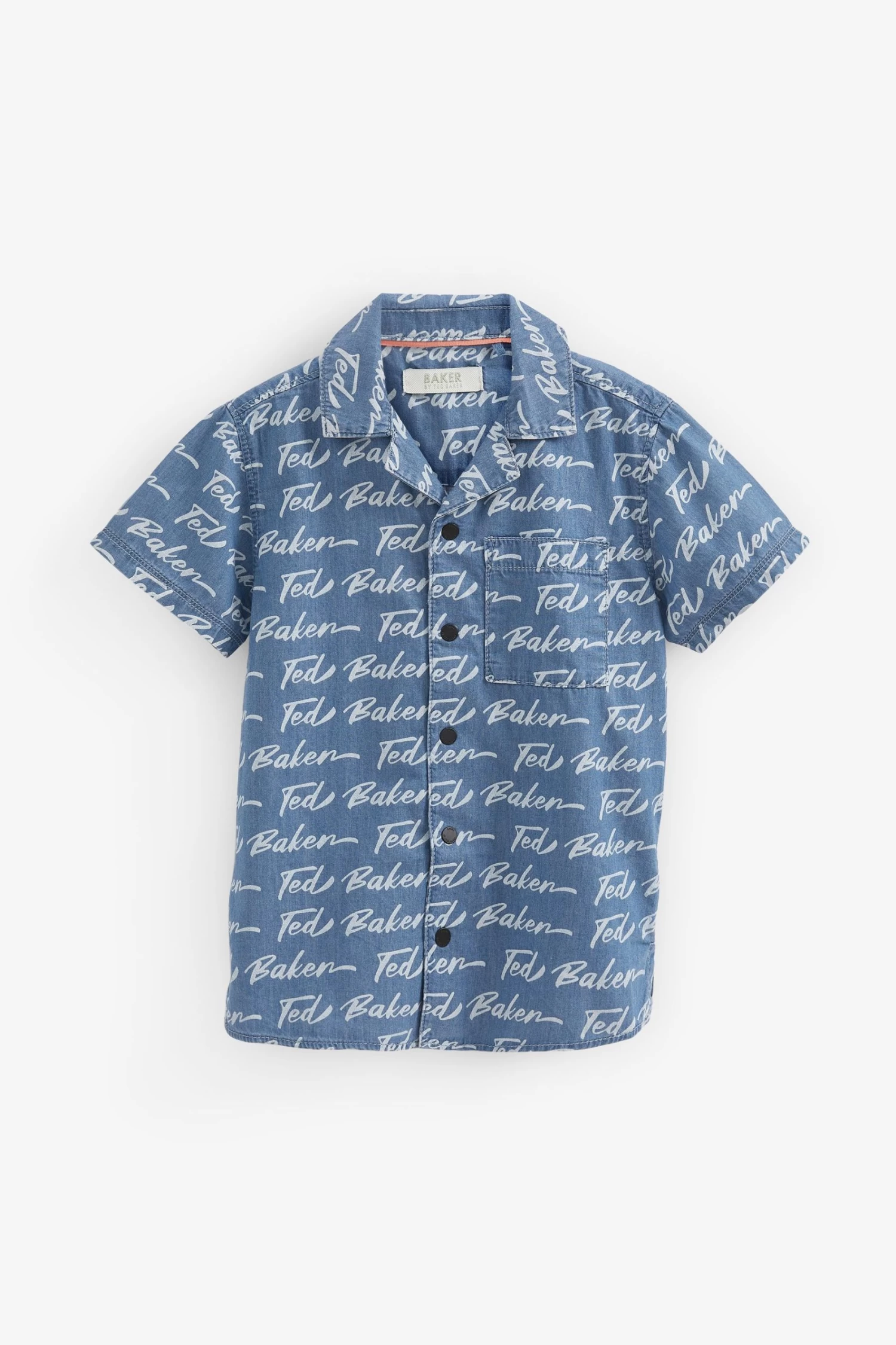He will be feel cool and look cool this summer in this sleek shirt from Baker by Ted Baker. Covered in an iconic branded print, the lightweight chambray shirt also has short sleeves with matte black branded popper fastenings down the front that can be undone or done up to suit the occasion.