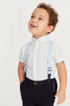 Dress up your little man for the occasion in this adorable outfit set from Baker by Ted Baker. The three-piece set includes a relaxed pair of chinos that have gorgeous branded braces attached to them that are fully adjustable for the perfect fit and it is completed with a short sleeved shirt. Made from soft and breathable fabrics, this charming outfit is designed to keep him cool and comfy throughout the day.