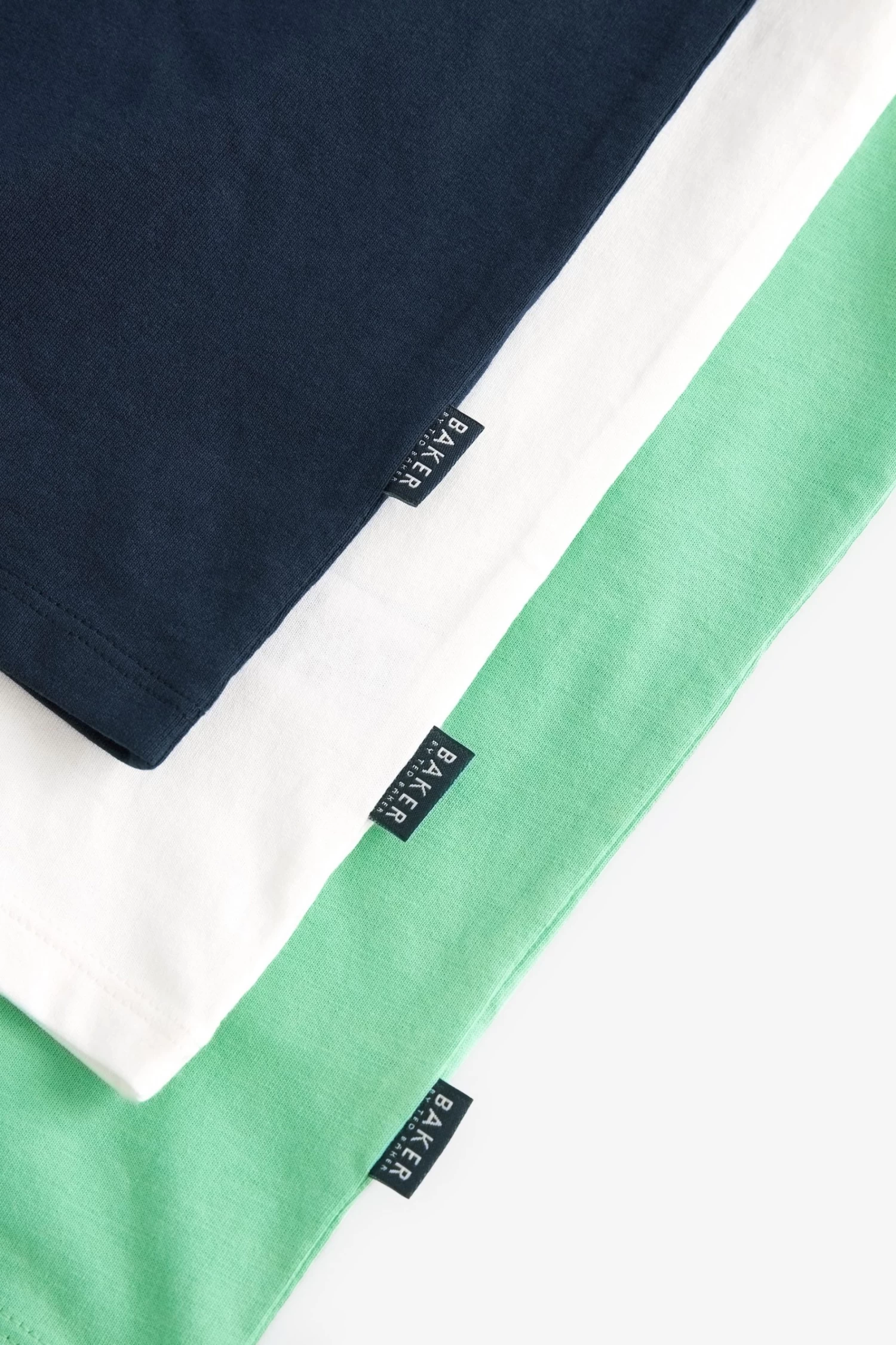 This multipack of boys’ t-shirts from Baker by Ted Baker will be an everyday essential in the warmer months. Made from soft and breathable cotton, the trio of short sleeve crew neck t-shirts each boast a different colourway and are all finished with the famous branding printed on the chest in black.