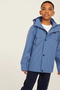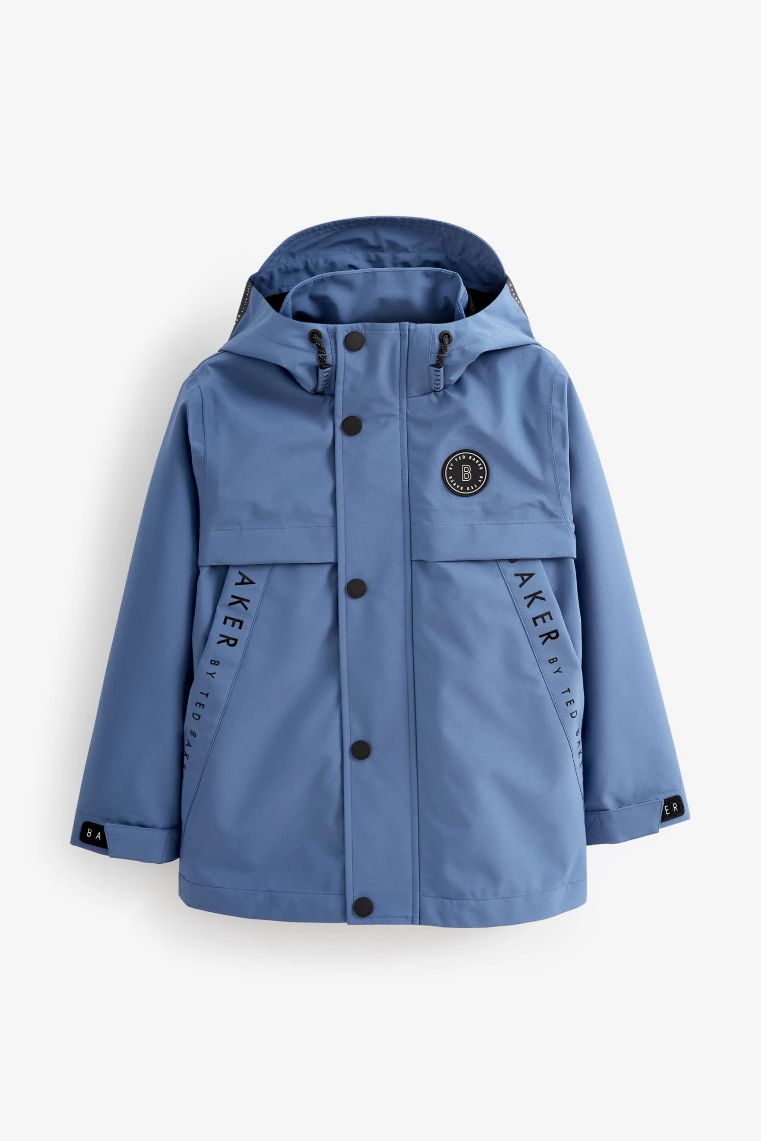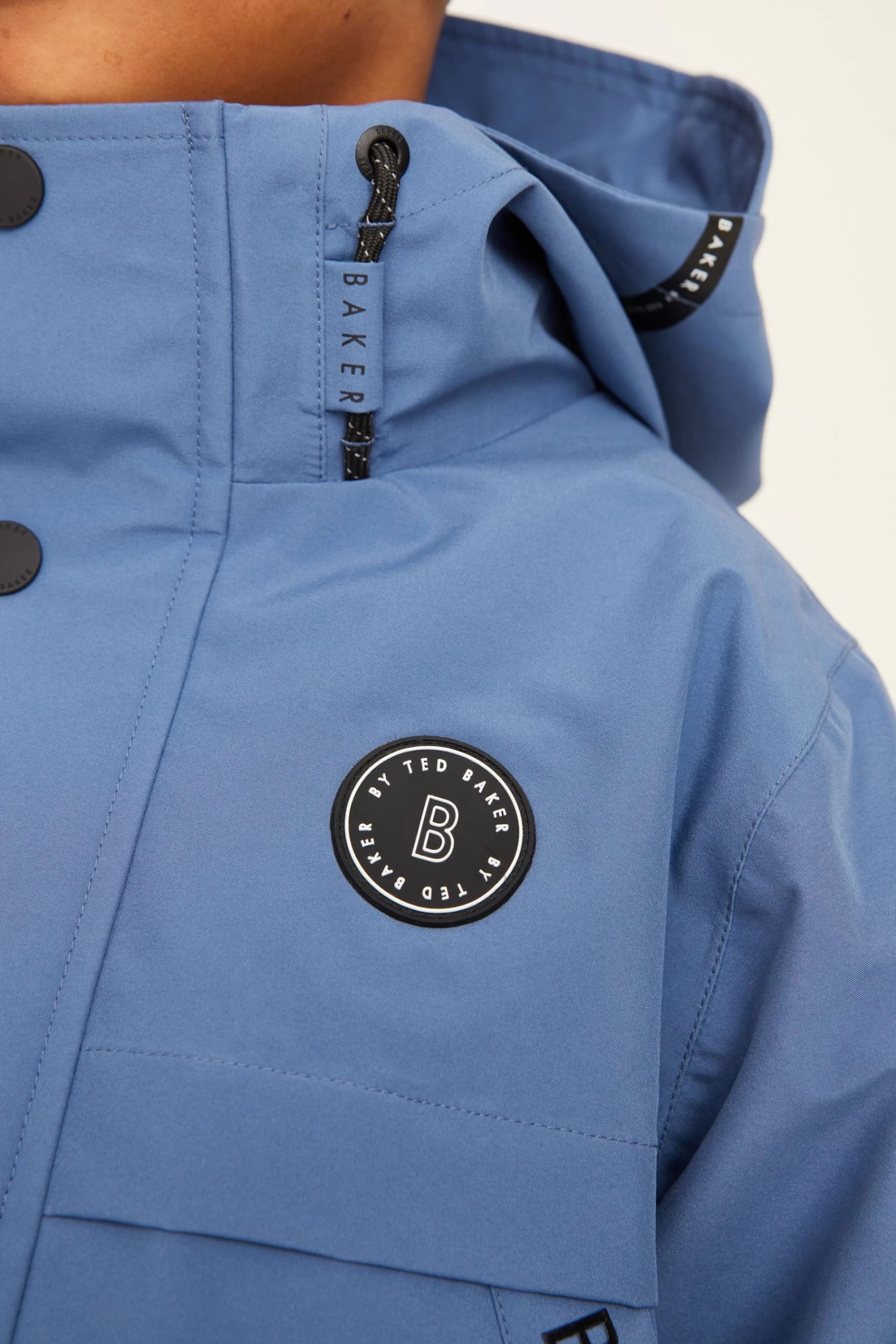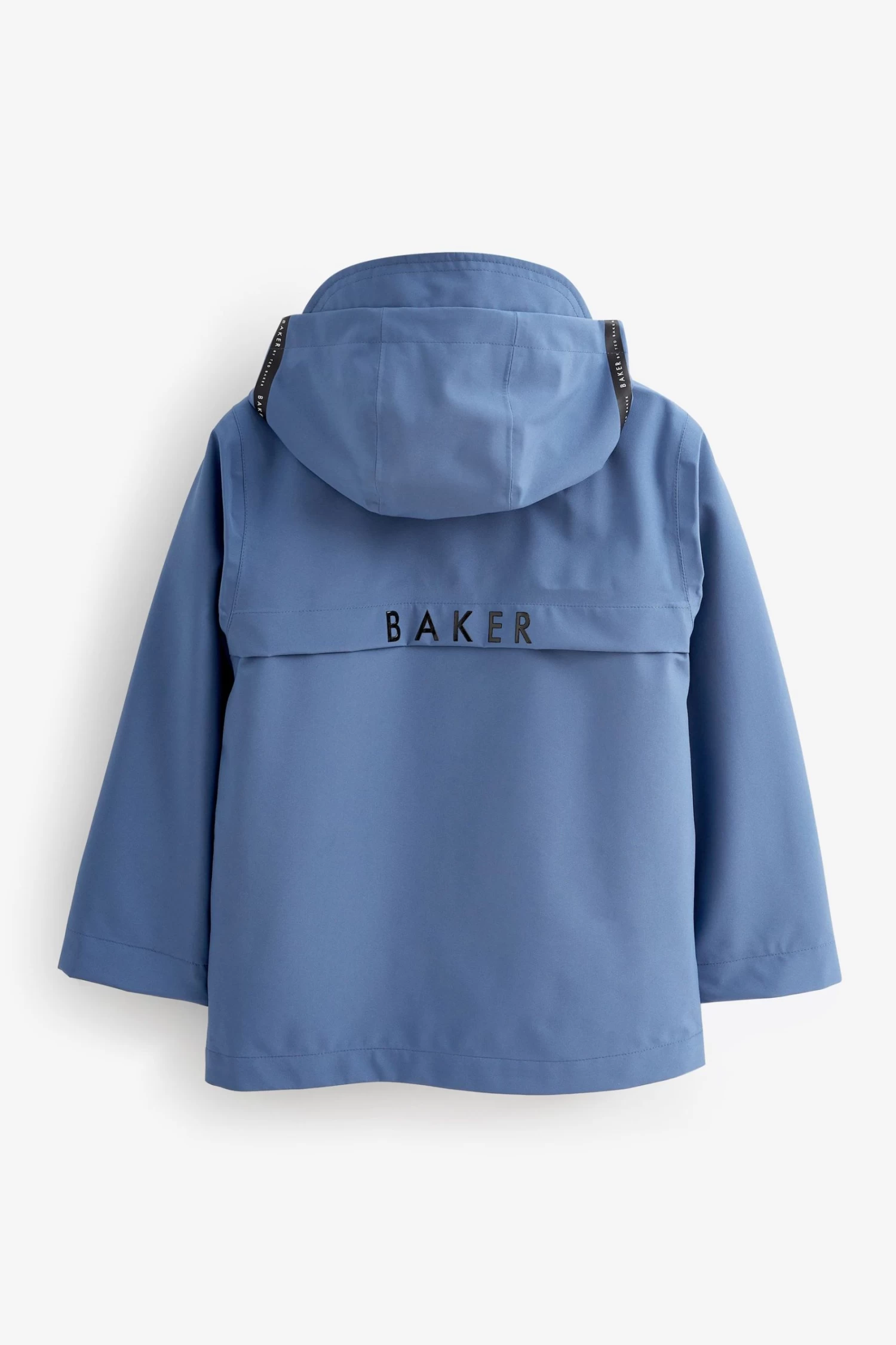 Tackle wet weather days with ease in this fashionable and functional jacket from Baker by Ted Baker. Waterproof to protect against showers, the slick black outerwear has branded details on the pocket openings with a branded chest badge on the front and a zip fastening with metal poppers to keep them cosy. Adjustable wrist straps will ensure a comfortable fit on their arms and the hood is finely finished with branded drawcords.