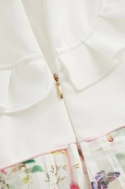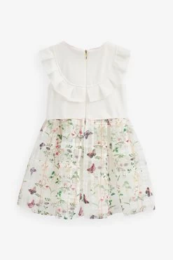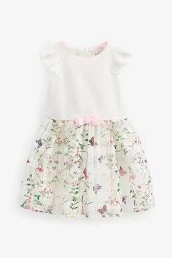 Make her summer days even more stylish in this delightful dress from Baker by Ted Baker. It features a classic white bodice with pretty frilled sleeves and it is complemented with an organza skirt that is decorated all over with a beautiful floral print and finished with a bow detail on the waist.