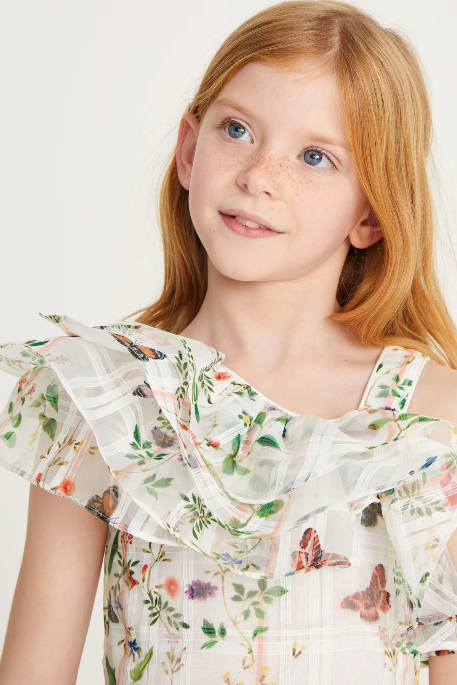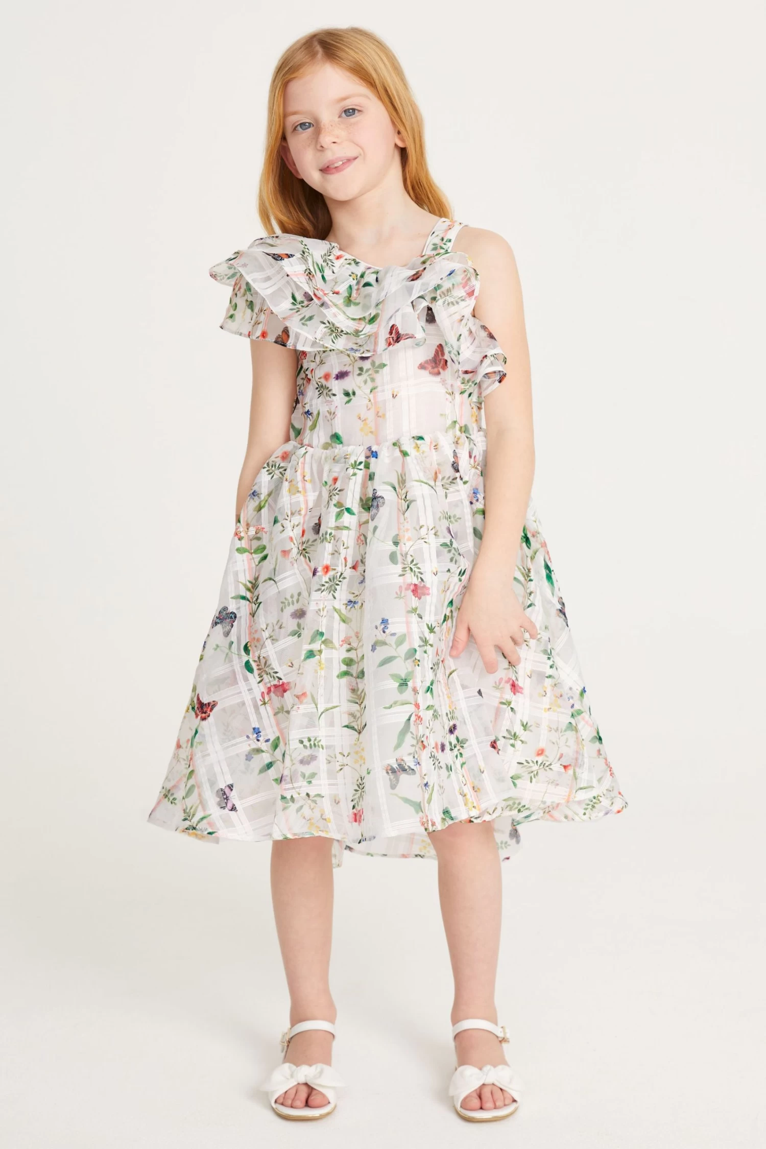 A beautiful dress for your little lady to enjoy wearing time and time again from Baker by Ted Baker. Decorated all over with a delicate floral print, the adorable dress also features a strap detail on one shoulder with a front frill detail on the other that goes across the chest. Made from a lightweight polyester, the dress has a ruffled skirt that will be perfect for twirling.