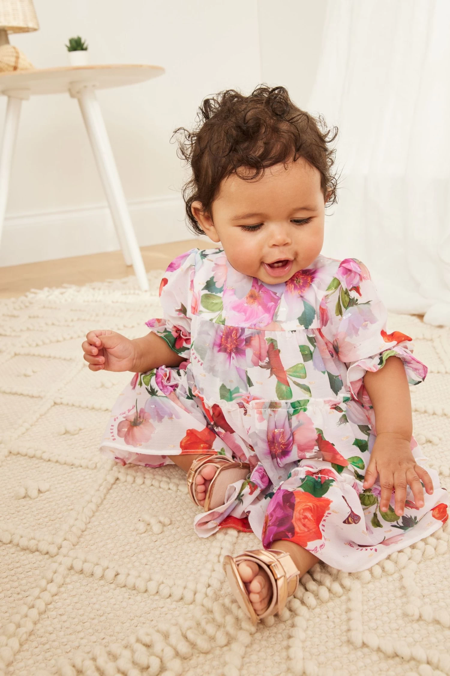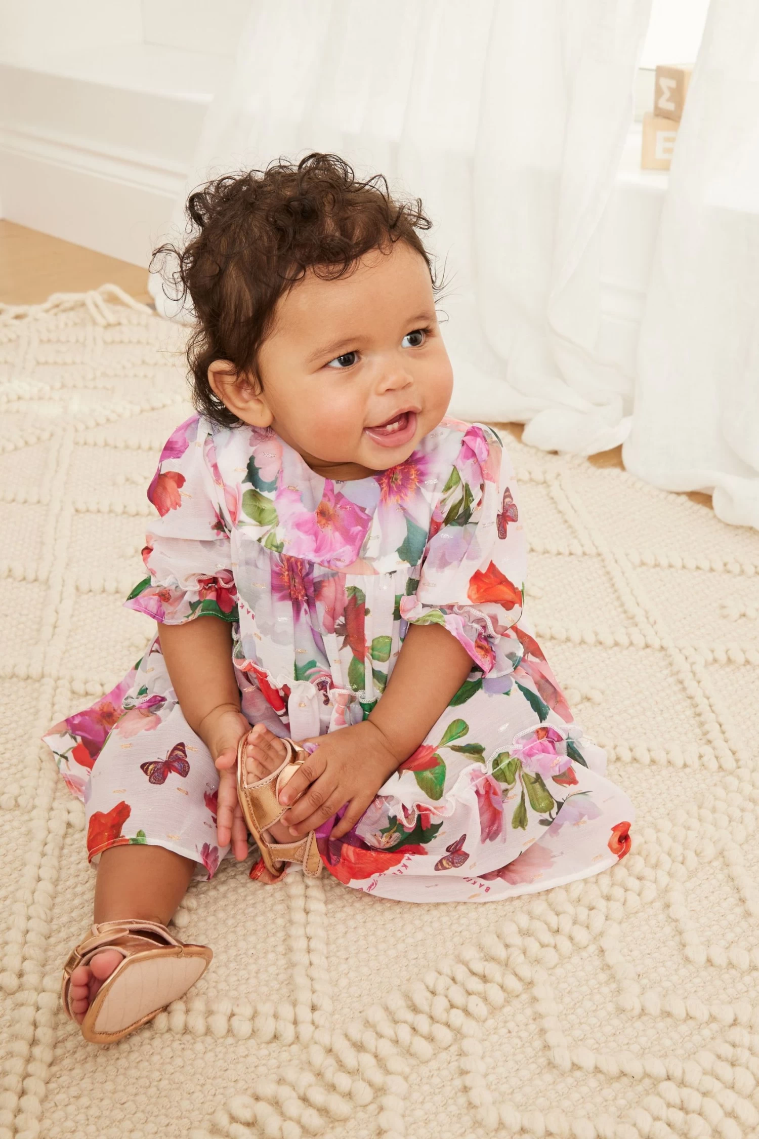 She will feel floaty and fabulous in this adorable Baker by Ted Baker dress. Perfect for all of your little lady’s special occasions, the floral printed piece has a tiered finish with sleeves that have a pretty cinched detail on the cuffs and branded button fastenings at the back. Team it with a pair of equally as beautiful shoes and she will be ready to go.