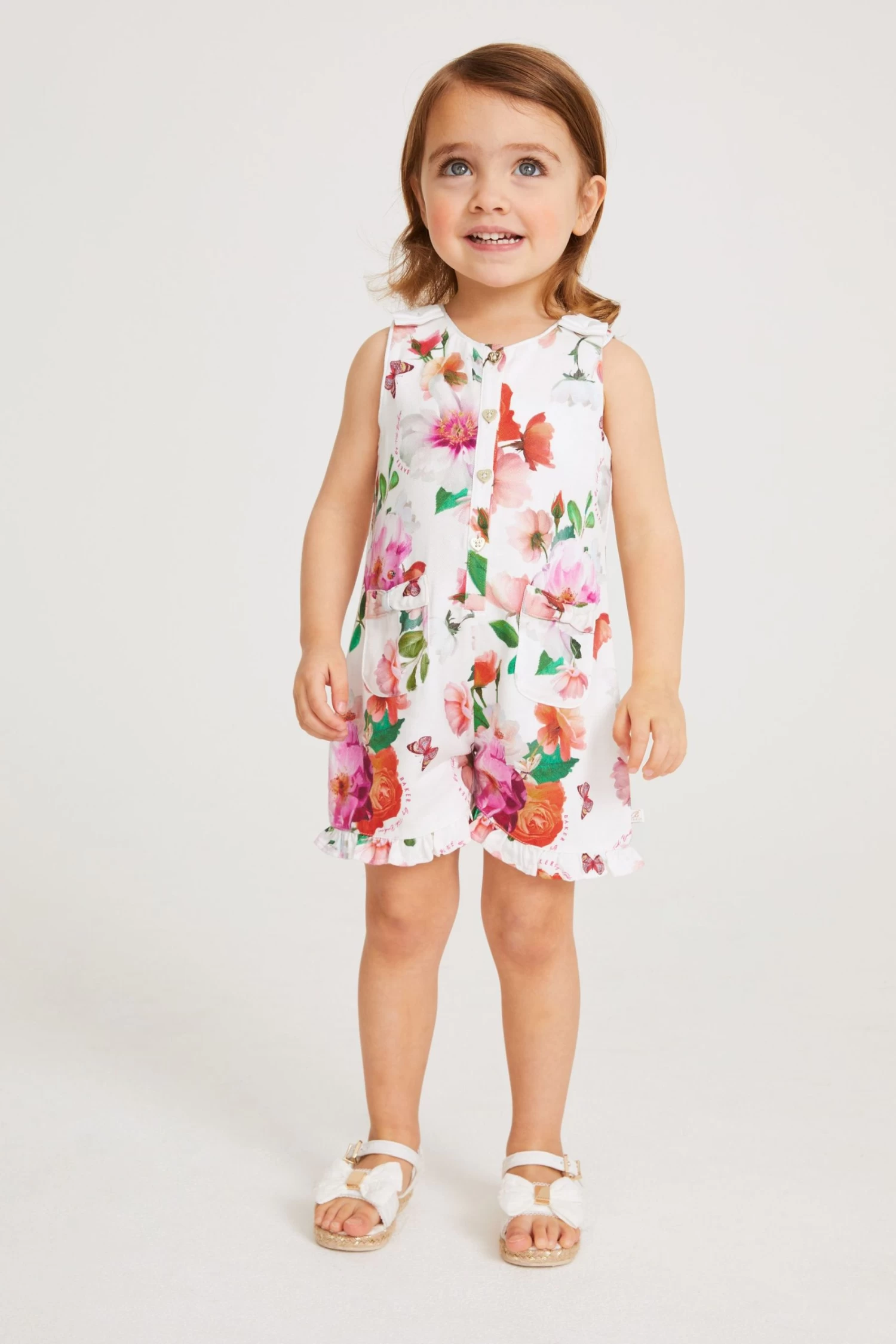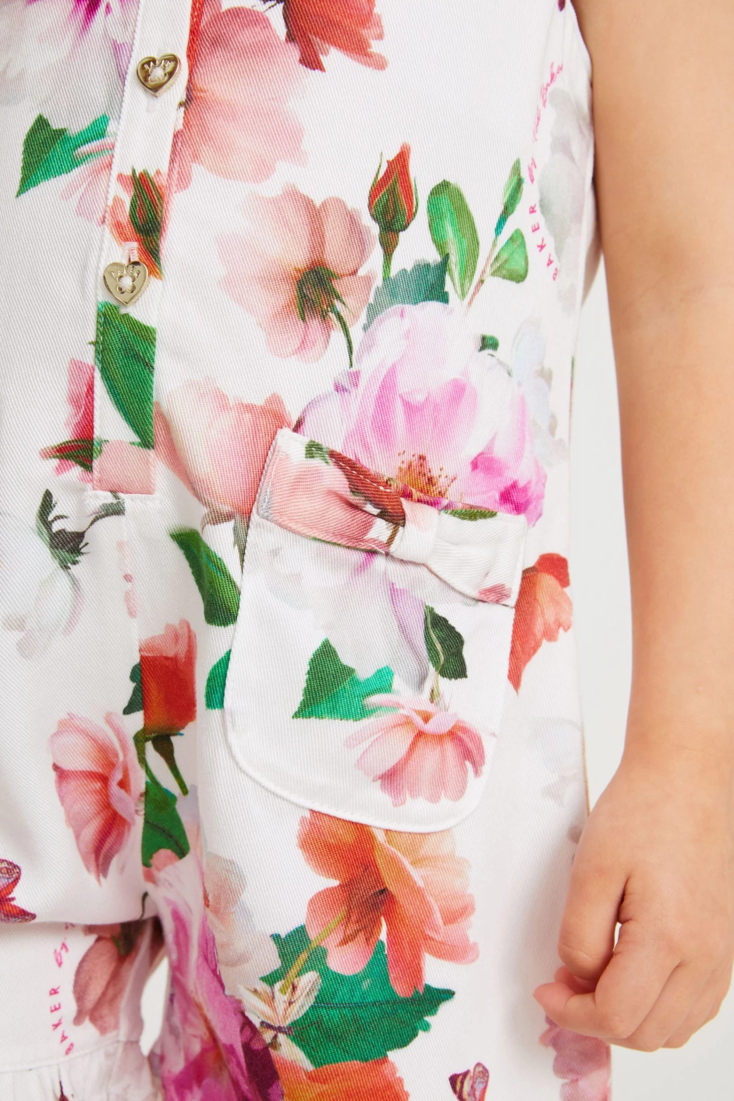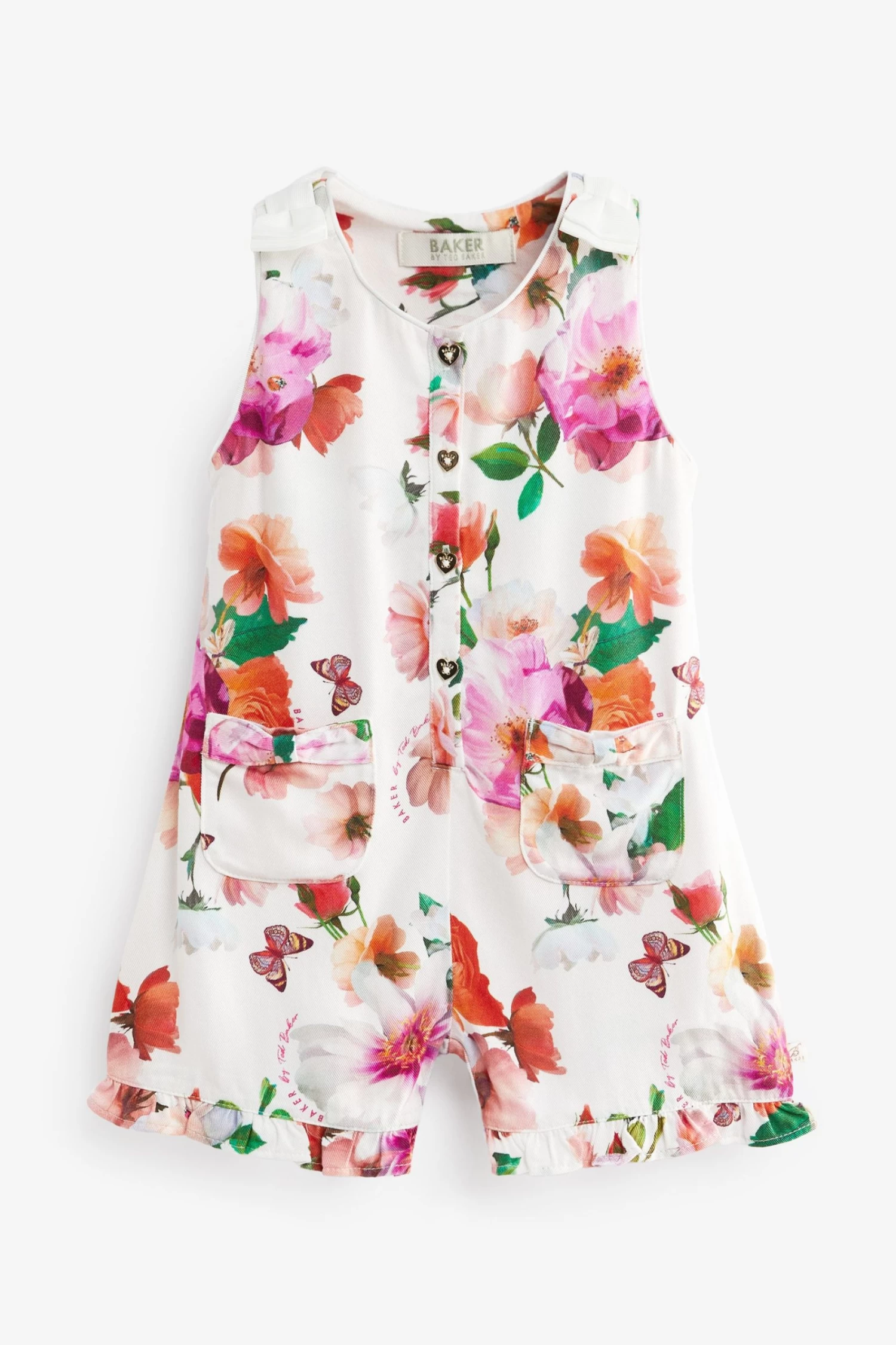 Perfect for days out in the sun, this adorable playsuit from Baker by Ted Baker will be your little lady’s summer must have. Decorated all over in a charming floral print, the stylish all-in-one made from a lightweight viscose also features cute heart shaped button fastenings down the front, bow details on the shoulders and two pockets. Team it with a pair of comfy sandals to complete the look.