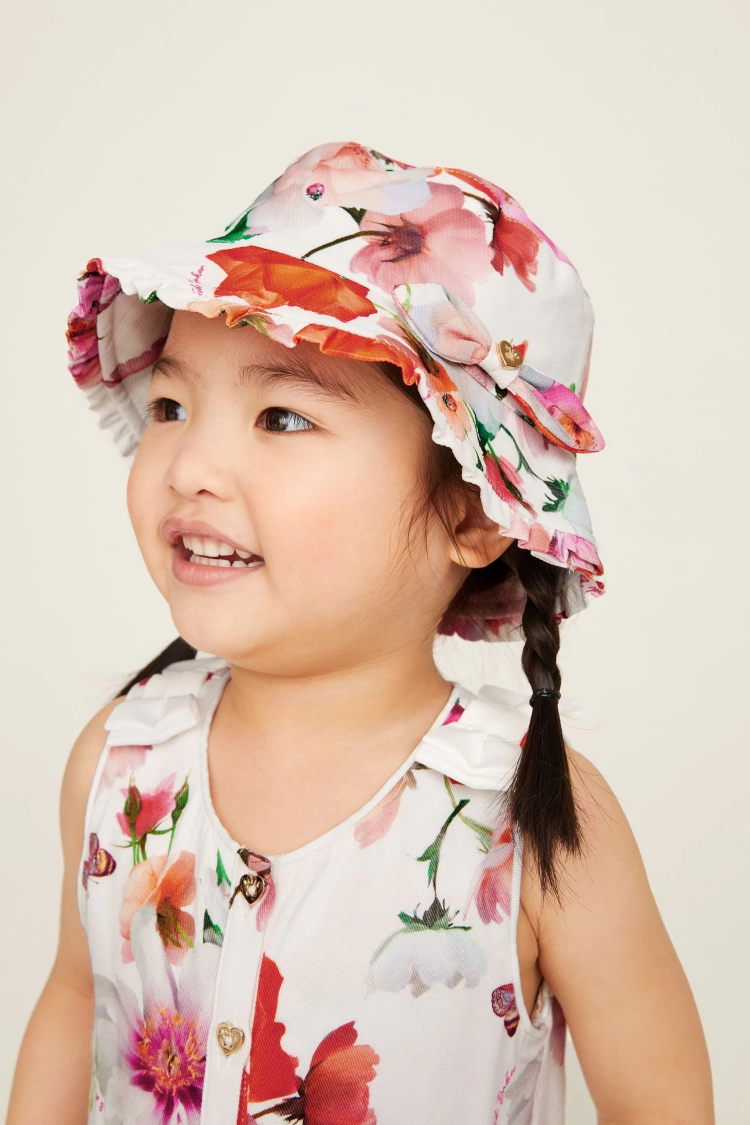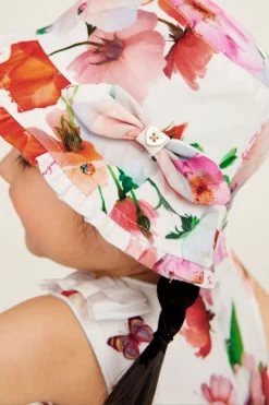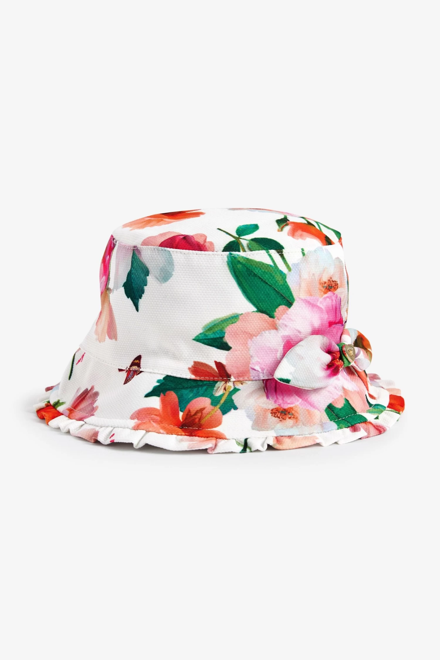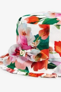 Cute and cool, this summer hat from Baker by Ted Baker will ensure your little one is kept safe and stylish this summer. Decorated all over in a bold and colourful floral print, this bucket hat also boasts a frilled brim with a bow detail on the side and a Ted Baker branded gold trim. This will be her summer must-have item.