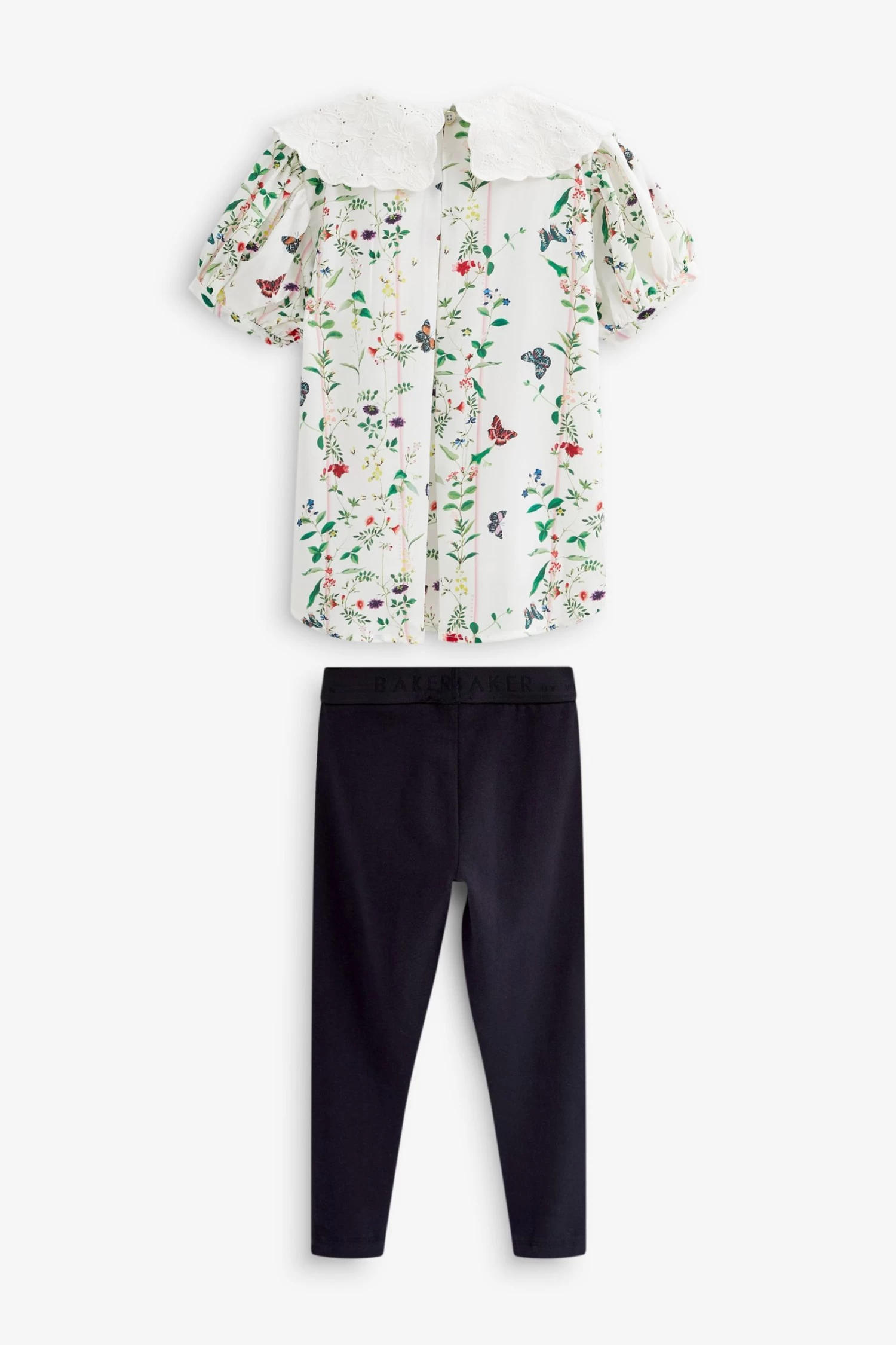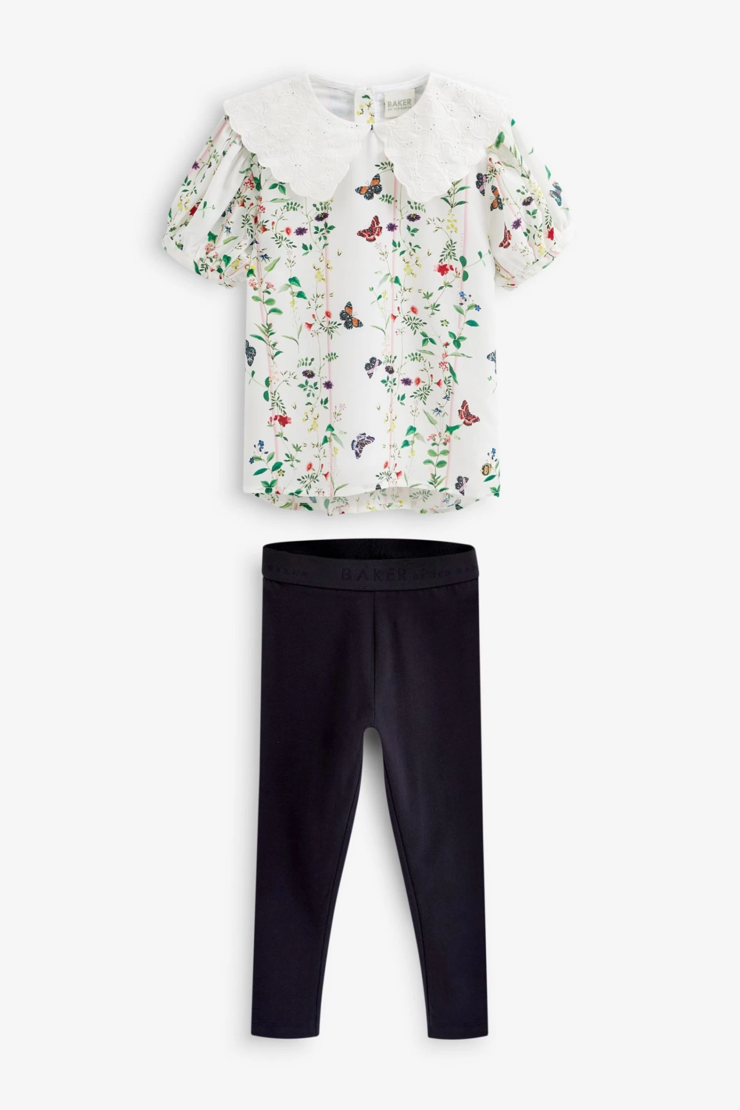 Baker By Ted Baker White Leggings And Broderie Collar Blouse Set