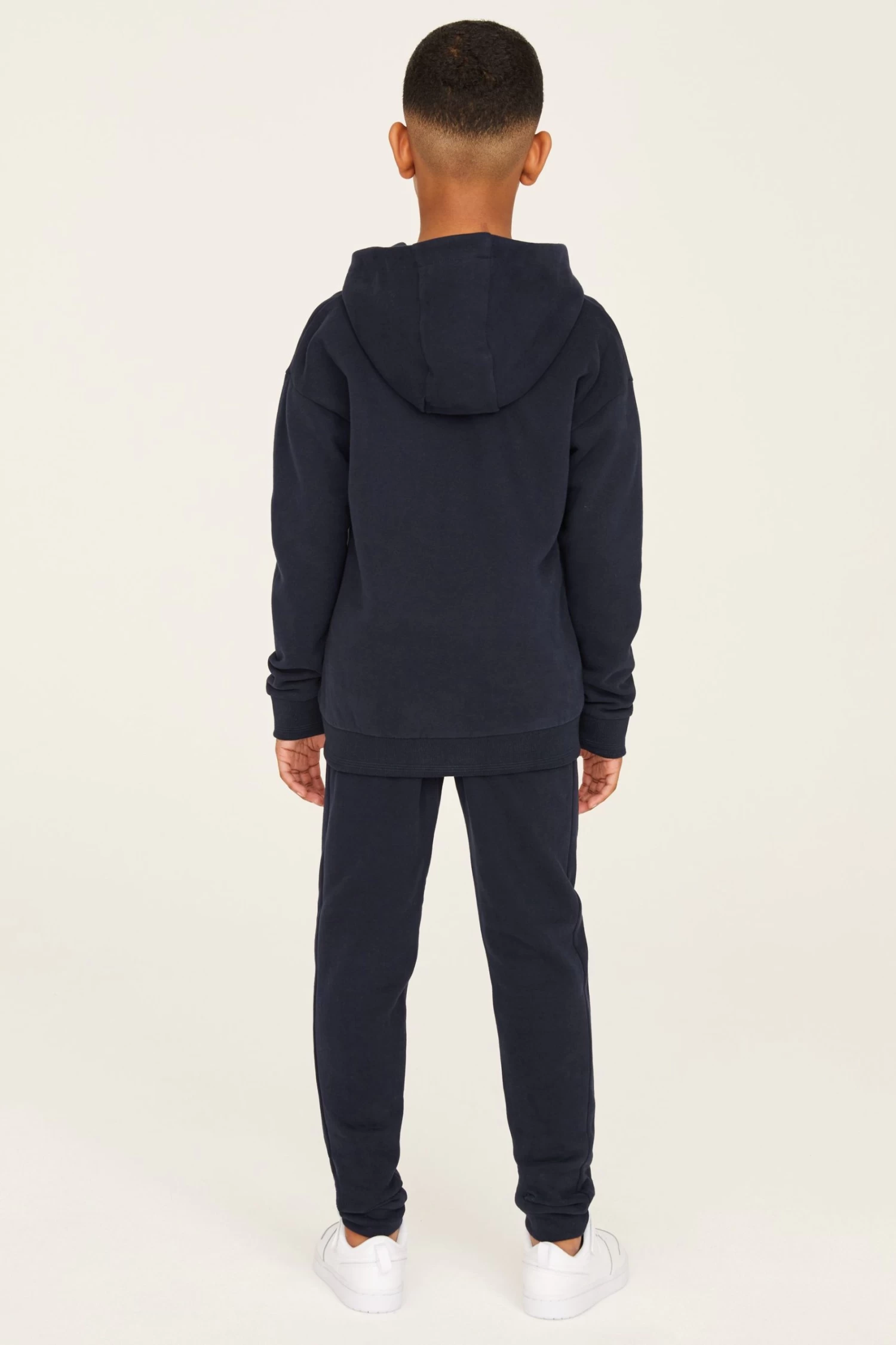 Made for days off, this classic and comfortable co-ord set from Baker by Ted Baker will keep your little man looking and feeling great. The matching set in a rich navy blue includes a zip through hooded top that boasts a branded detail on the chest, front pockets and branded drawcords on the cosy hood. It comes with a pair of joggers that also have branded drawcords on the elasticated waistband and branding down the leg all the way to the cuffed ankles.
