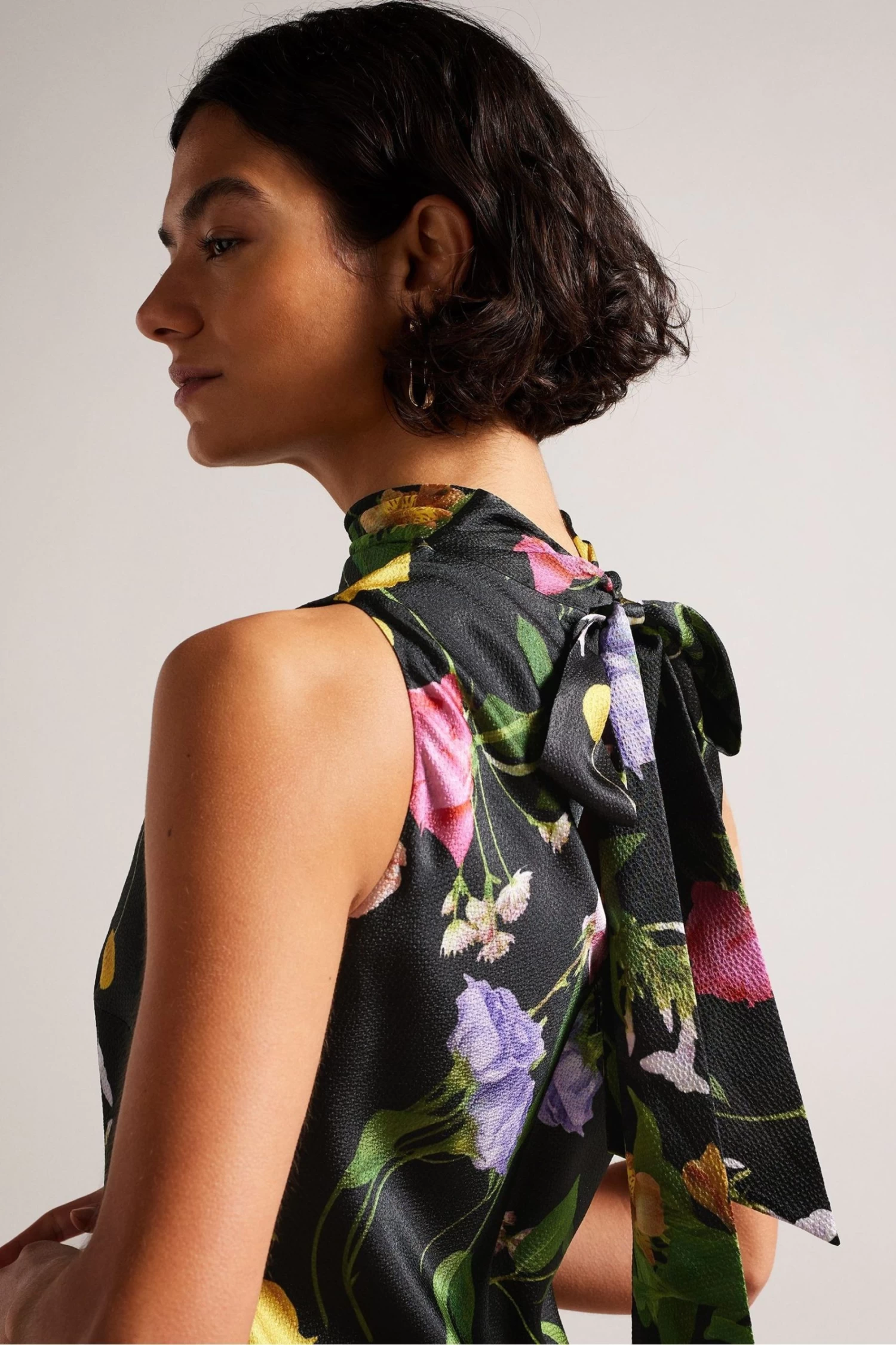 The perfect outfit for special occasions, the ADDILIN dress is equal parts chic and comfy. The cowl neck and bow-tied back make it the ideal piece to throw on for an effortlessly cool look, while the scattered bouquet print adds a touch of whimsy. The fabric of this product is made with 100% recycled polyester. Using recycled polyester helps divert plastic waste from ending in landfills, and helps us to reduce our dependence on virgin materials.