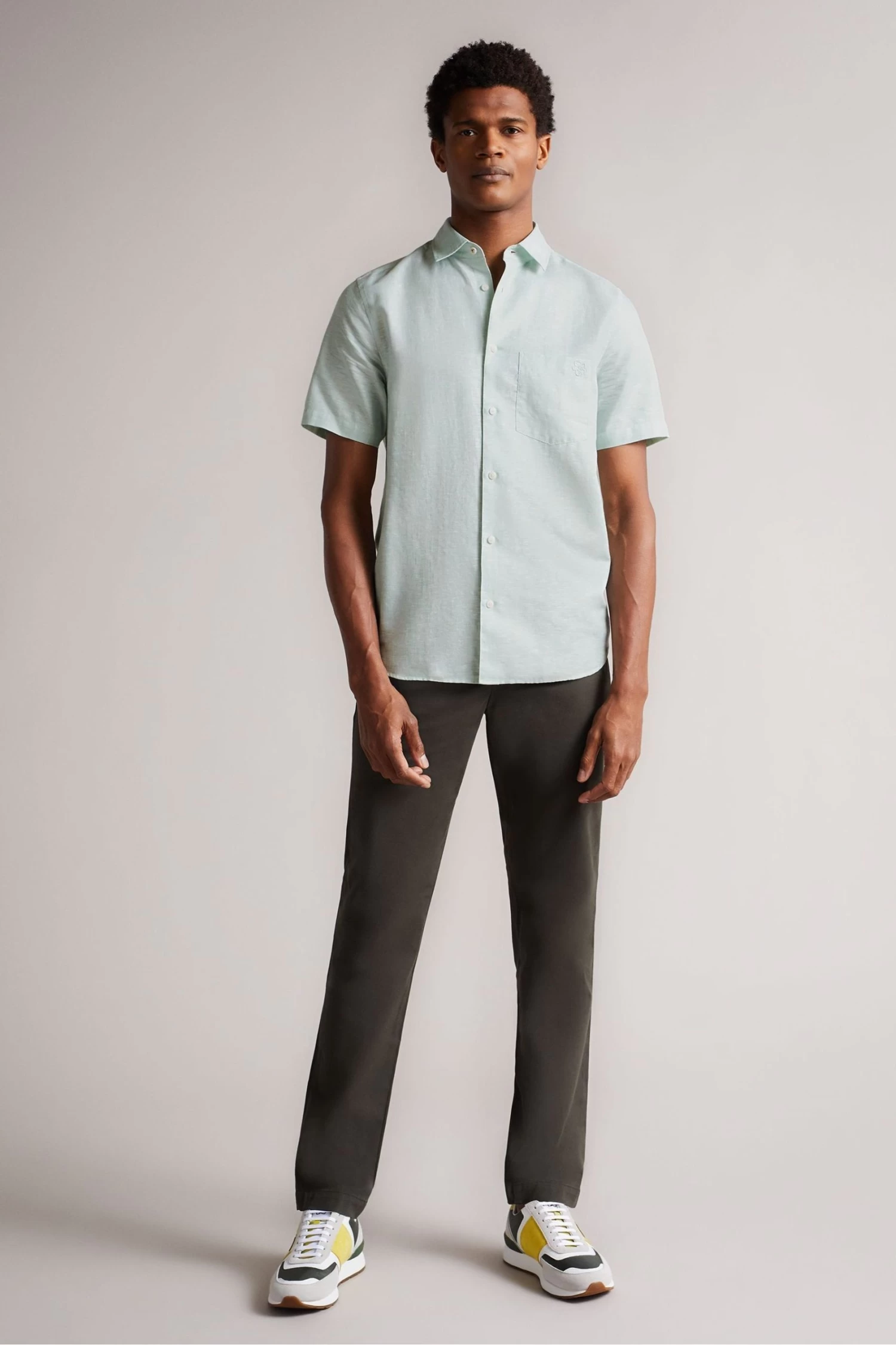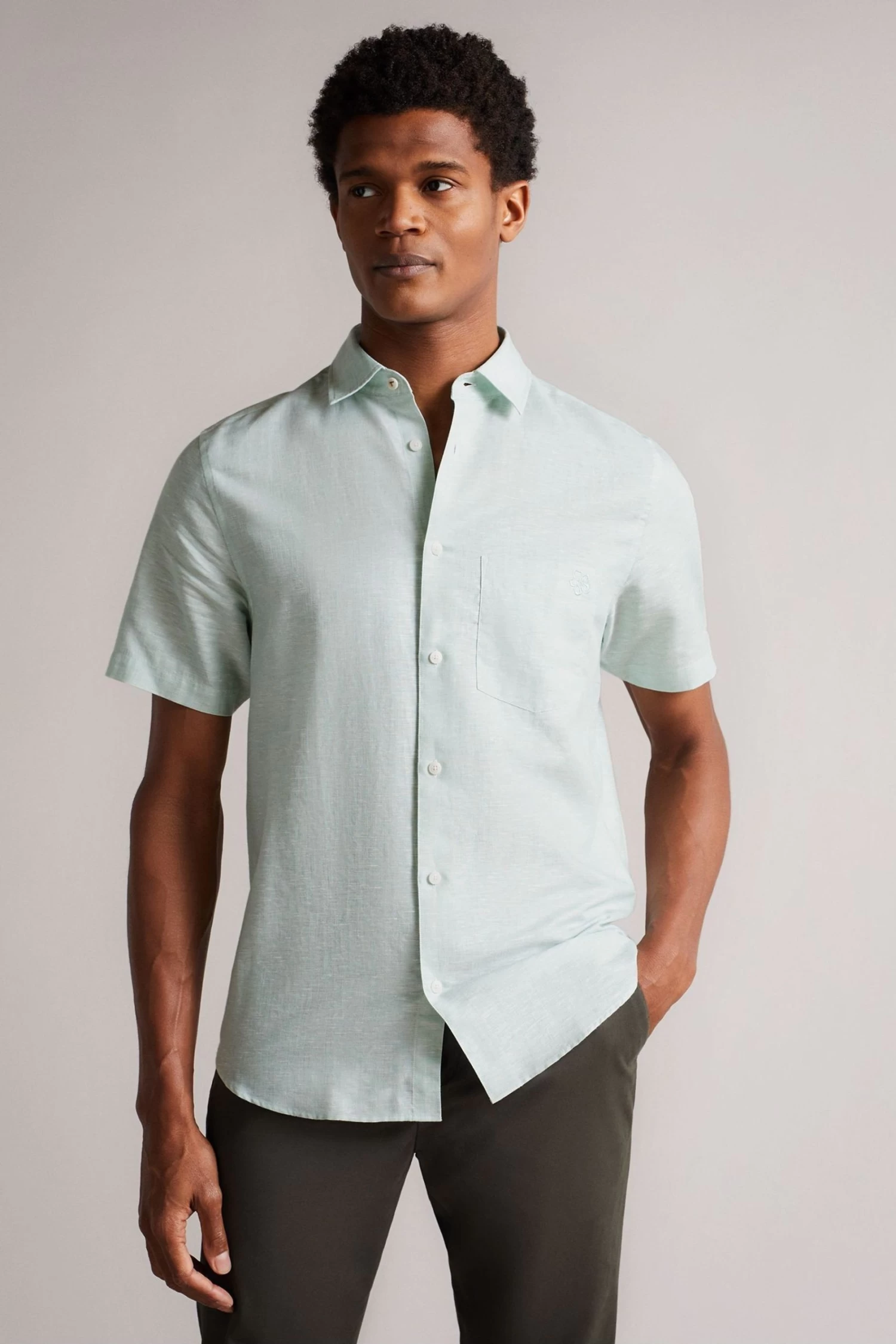 Ted Baker Addle Light Blue Short Sleeve Linen Shirt