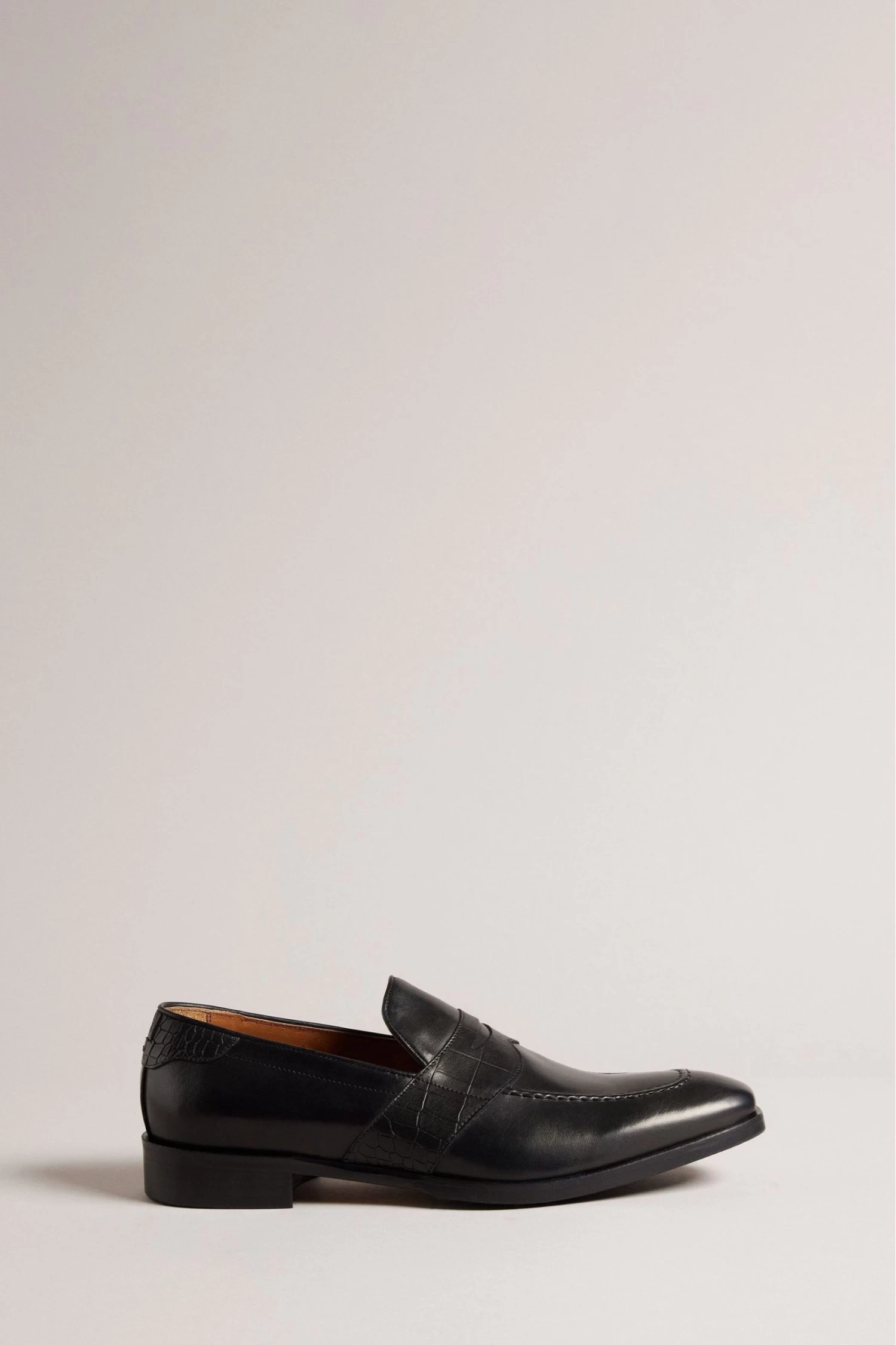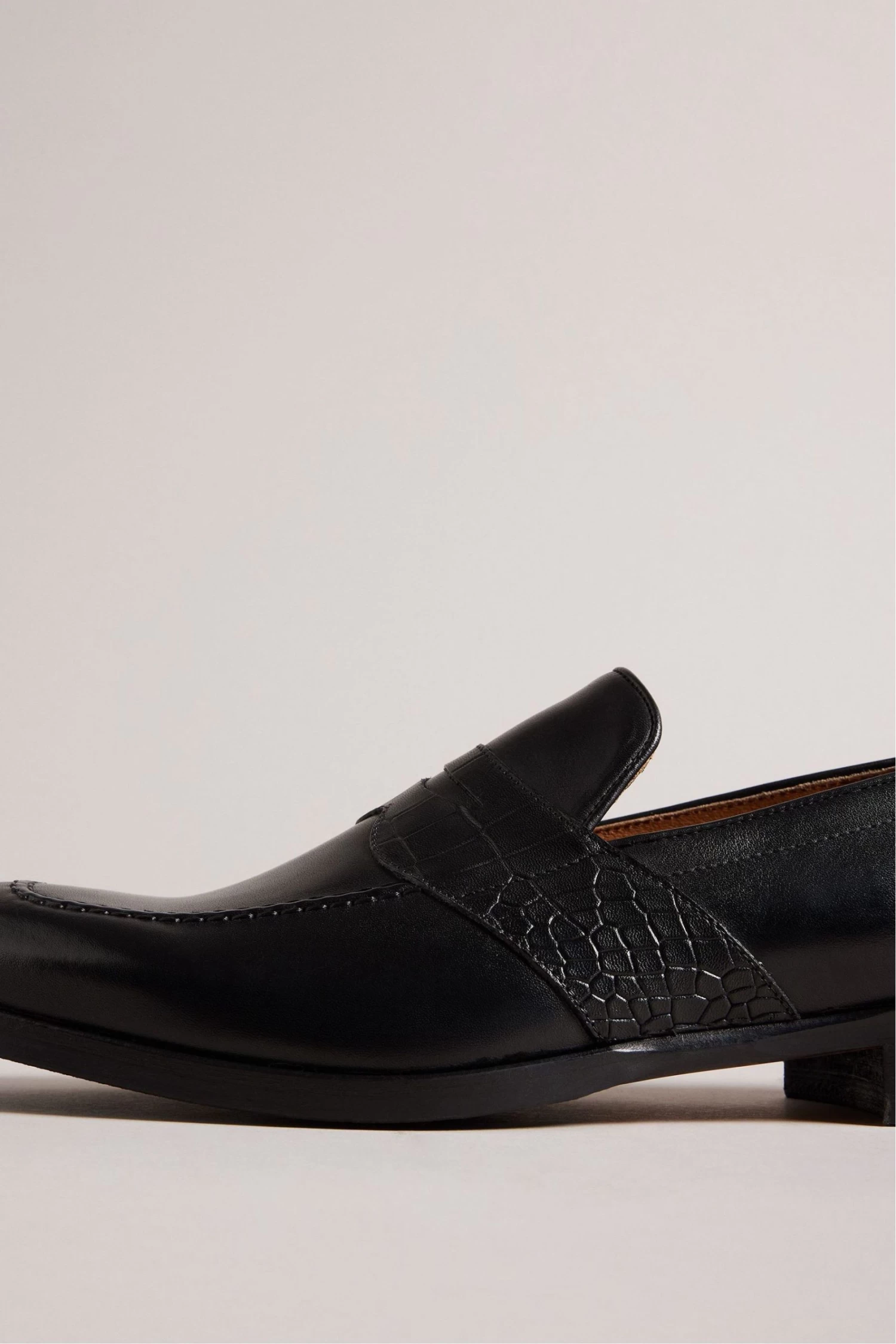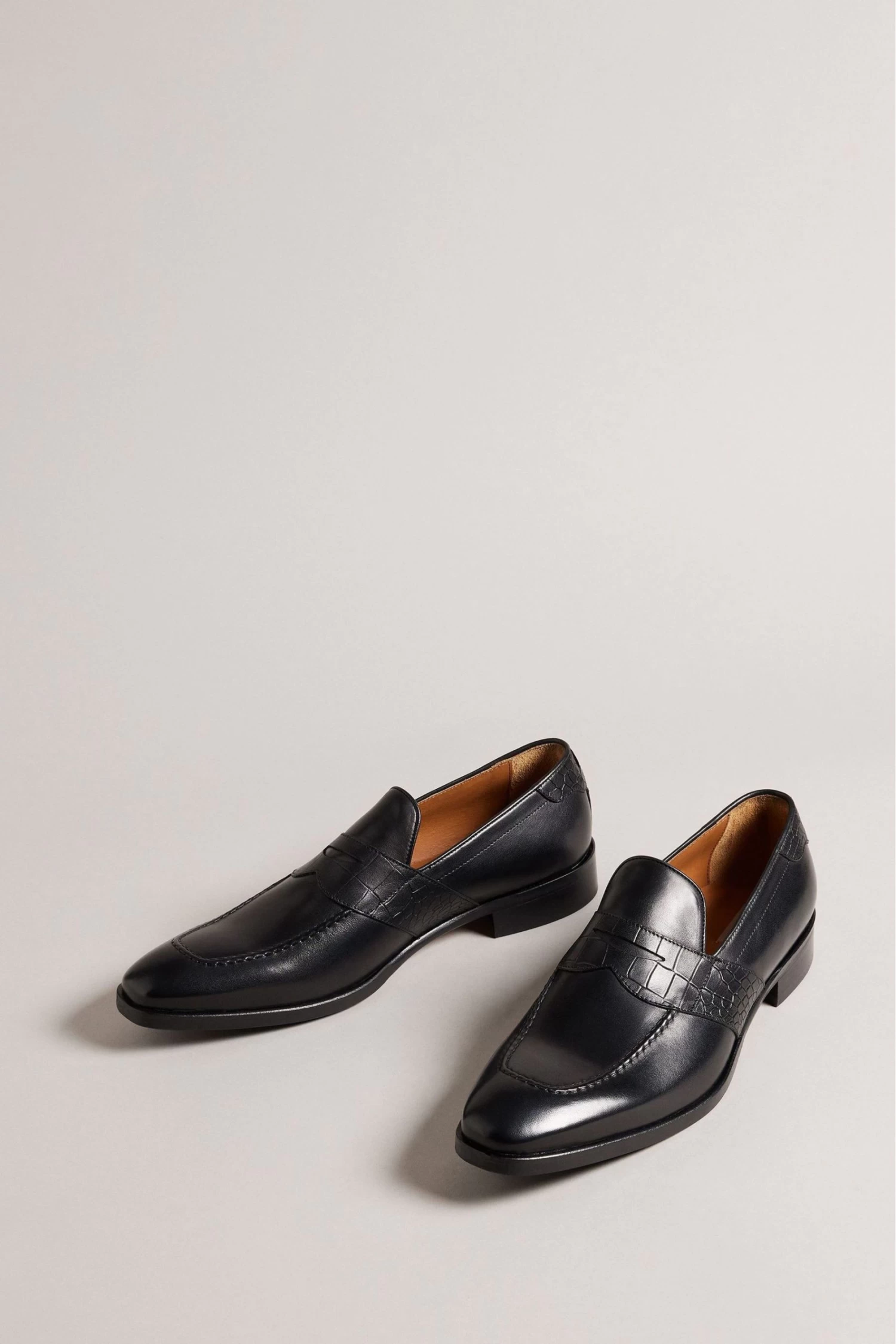Ted Baker Antoinn Black Crocodile Effect Leather Formal Loafers