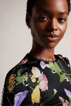 Ted Baker Arianya Blouson Sleeve Black Midi Dress