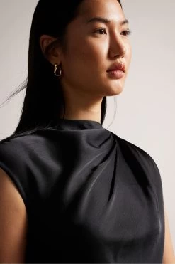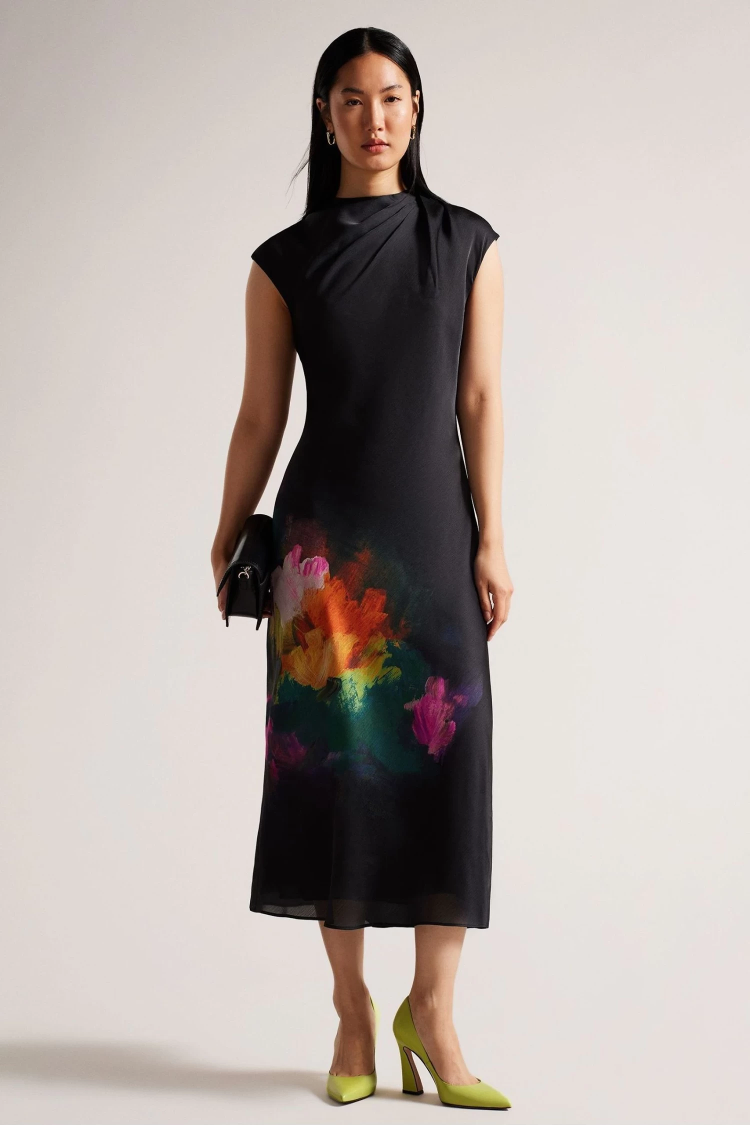 Ted Baker Averiee Black Slip Midi Dress With Draped Neck Detail