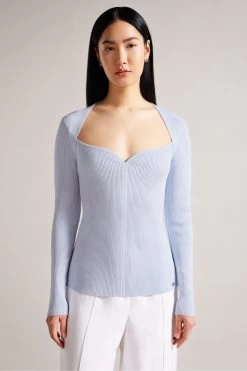 Ted Baker Baby Blue Helenh Sweetheart Neckline Knitted Top