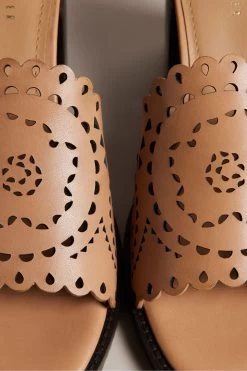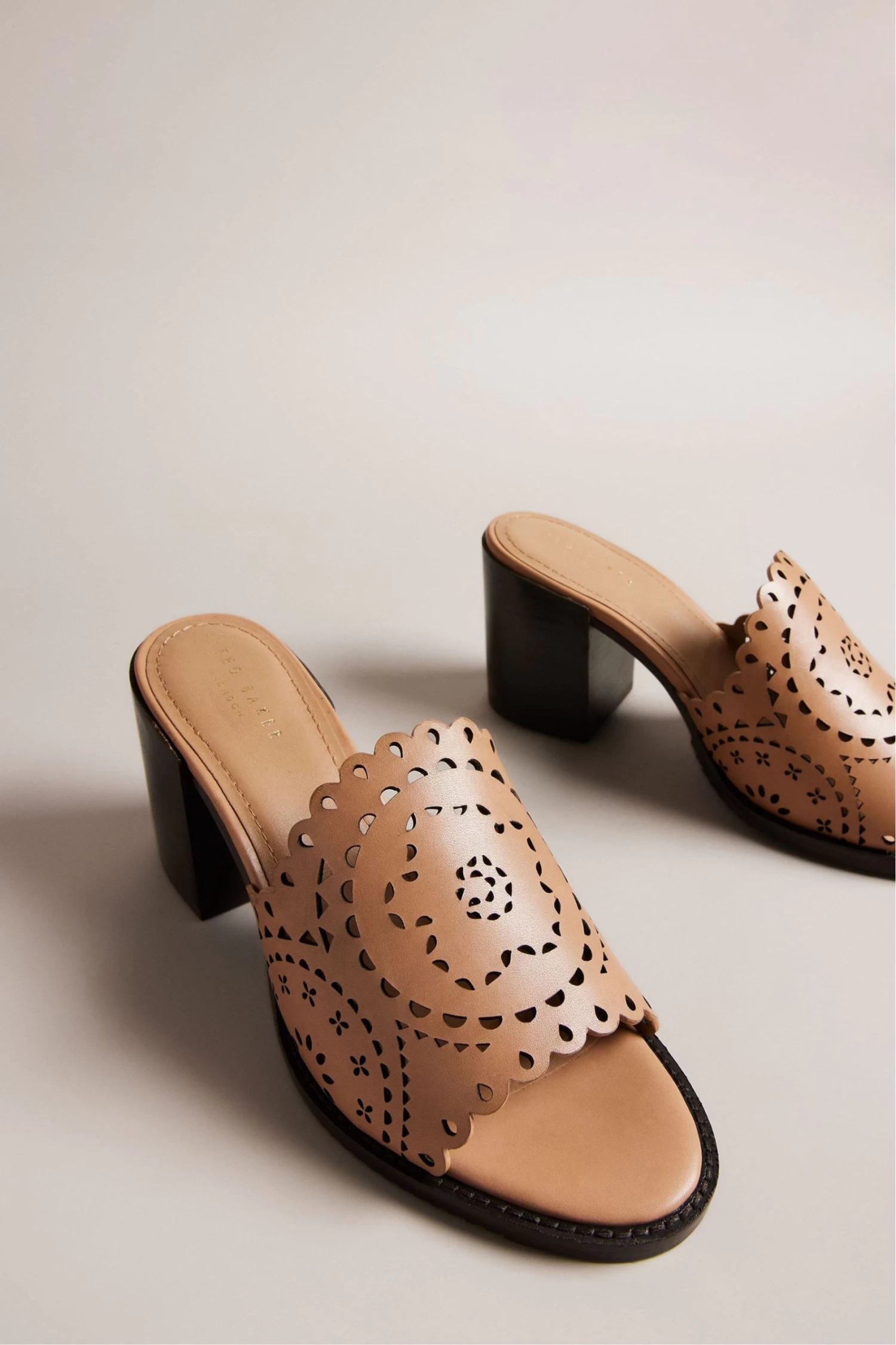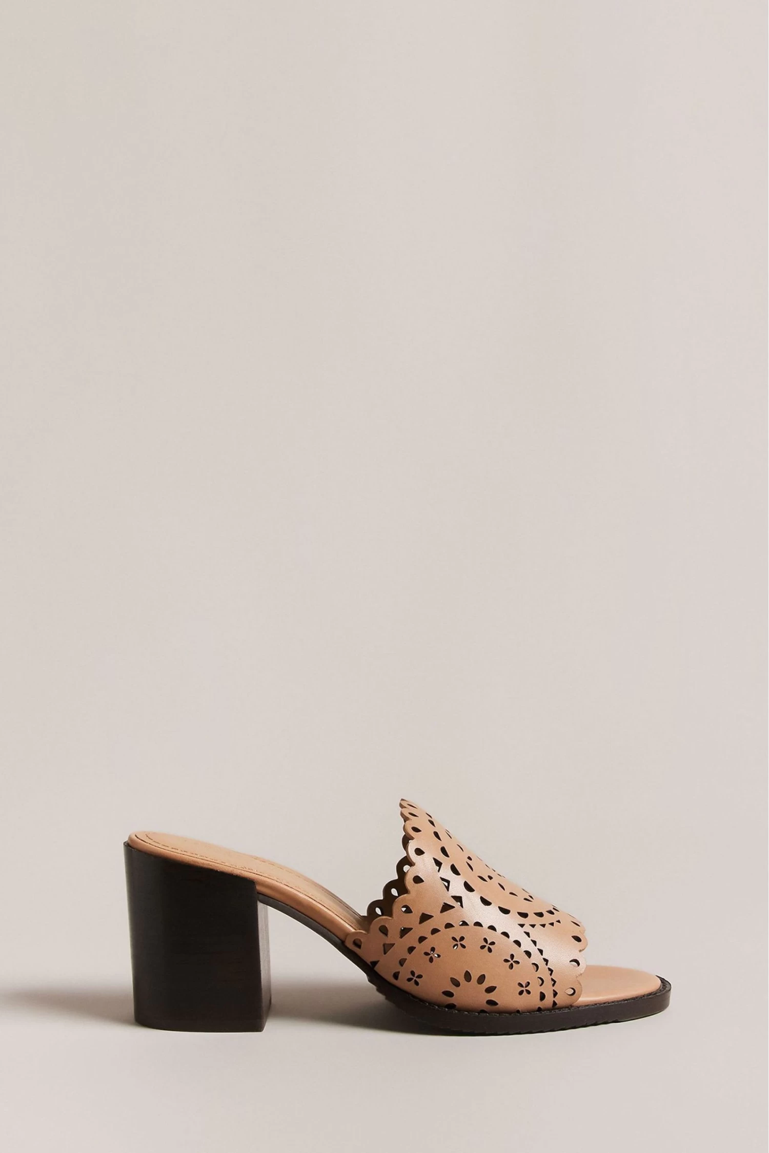 Ted Baker Beebah Laser Cut Block Heel Brown Mules