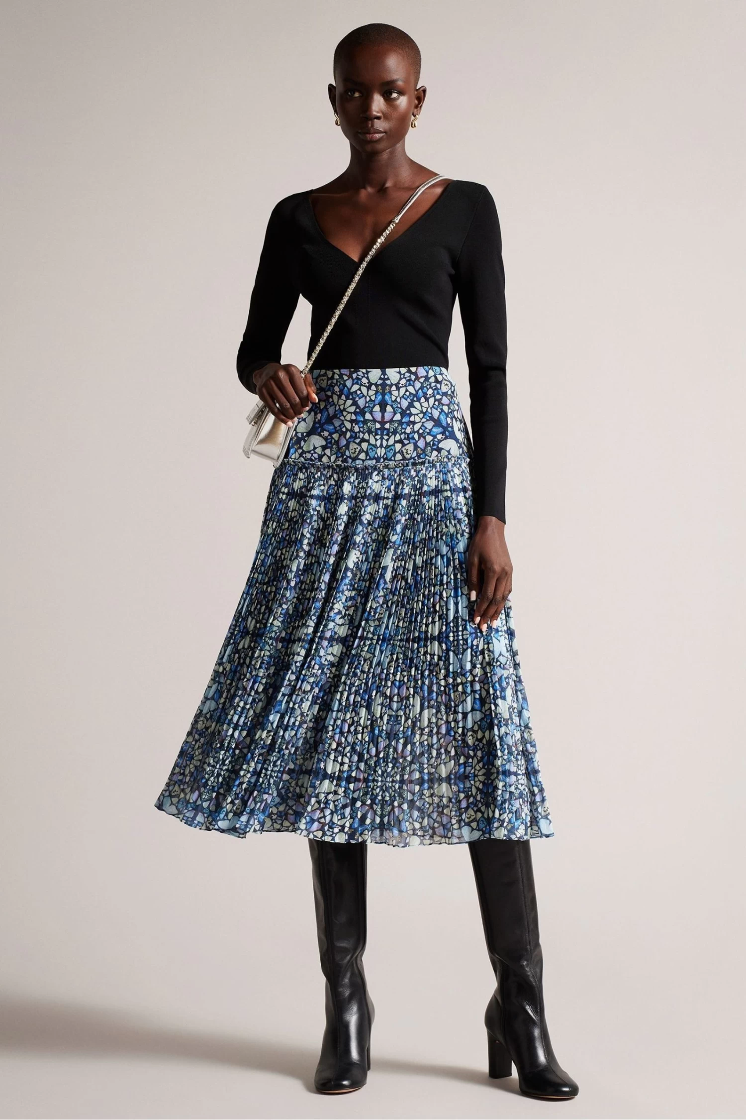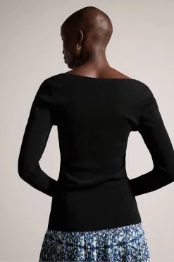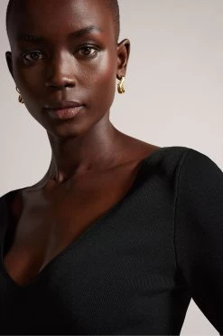 Ted Baker Black Cileste V-Neck Slim Fit Knit Top