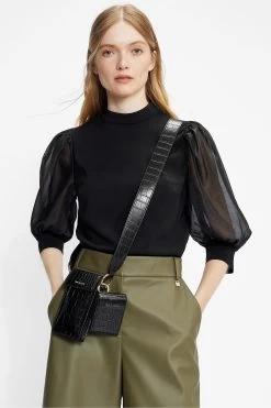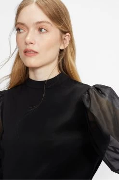 Ted Baker Black Micaeli Organza Volume Sleeve Top