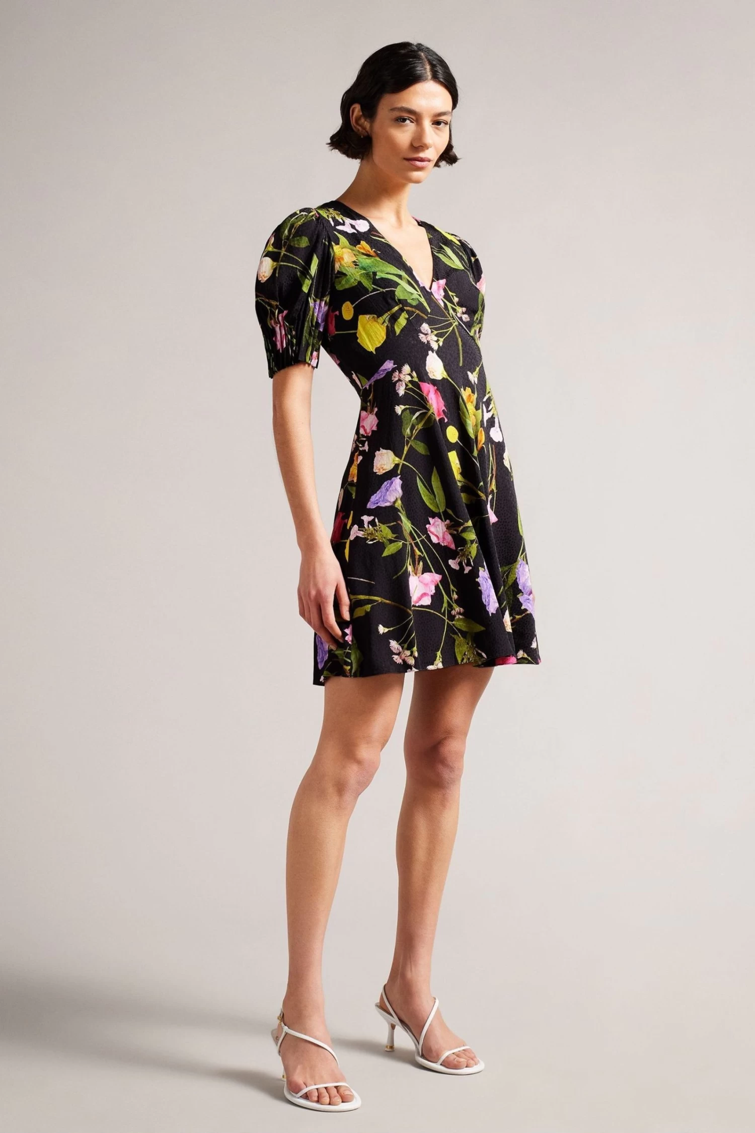 Ted Baker Black Opallie Mini Puff Sleeve Tea Dress