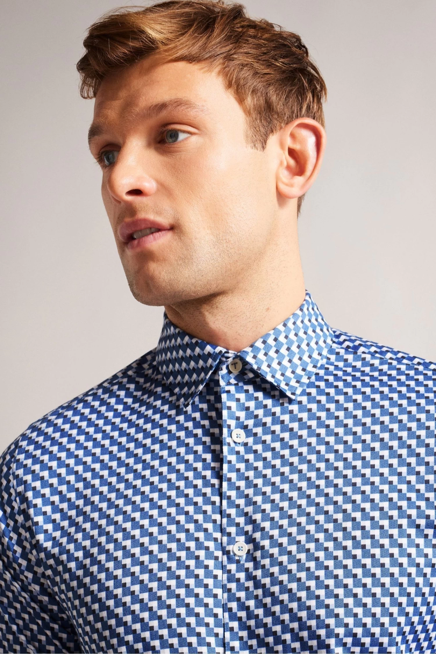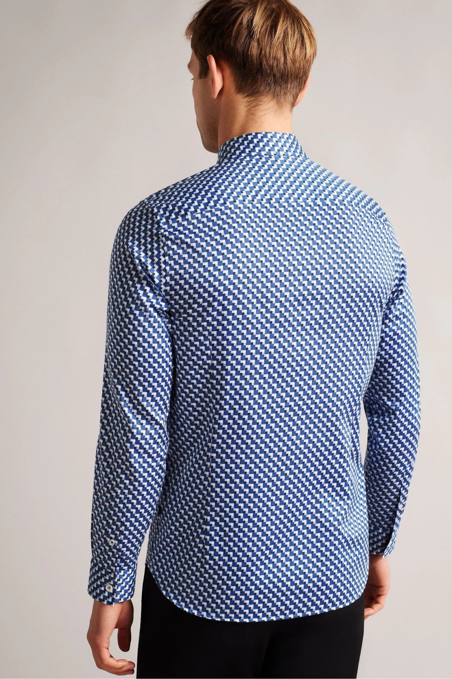 Ted Baker Blue Barder Long Sleeve Stretch Geo Shirt